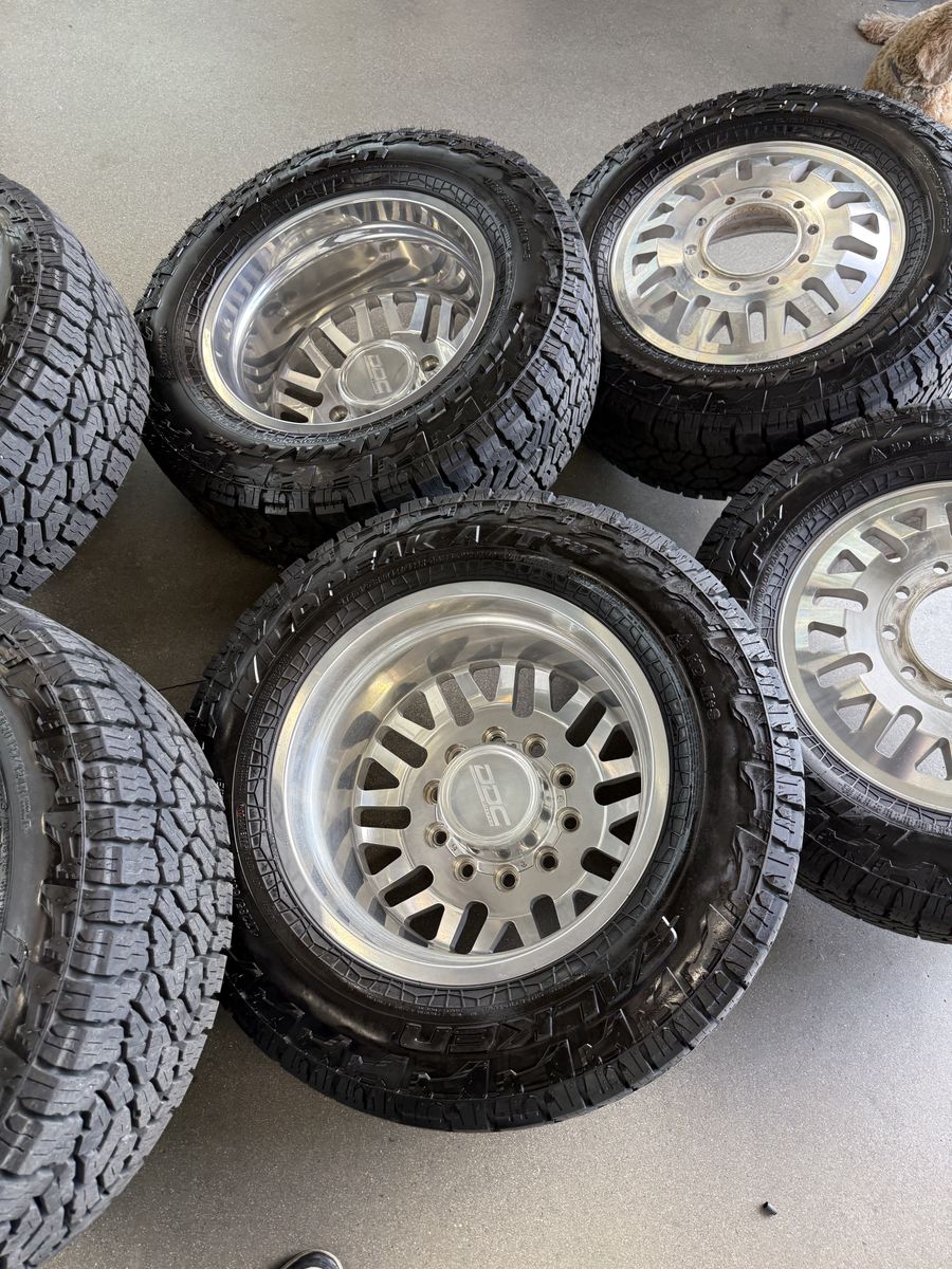 ApplePayLIKE NEW LESS THEN 2K MILES 20in DDC forged Dually wheels 285/65/20 falken wild peak all terrain tires