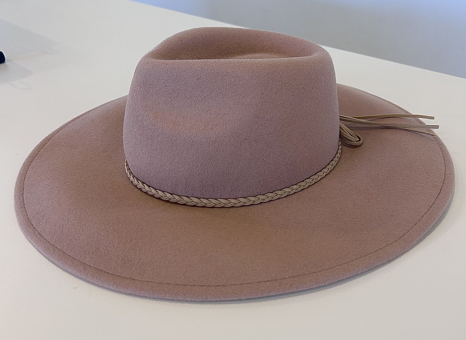 ZelleThe Dusty Pink 100% Wool Cowboy Hat by Altar’d State is a stylish and unique accessory for women. Made from high-quality wool with a felt fabric type, this one-size hat features a leather braid accent for a touch of detail. Perfect for travel, casual occasions, and the Western theme, this lightweight hat is ideal for summer, fall, and spring seasons. Handmade in China, this cowboy hat adds a pop of color with its solid pink hue and dusty character, making it a trendy addition to any outfit.
