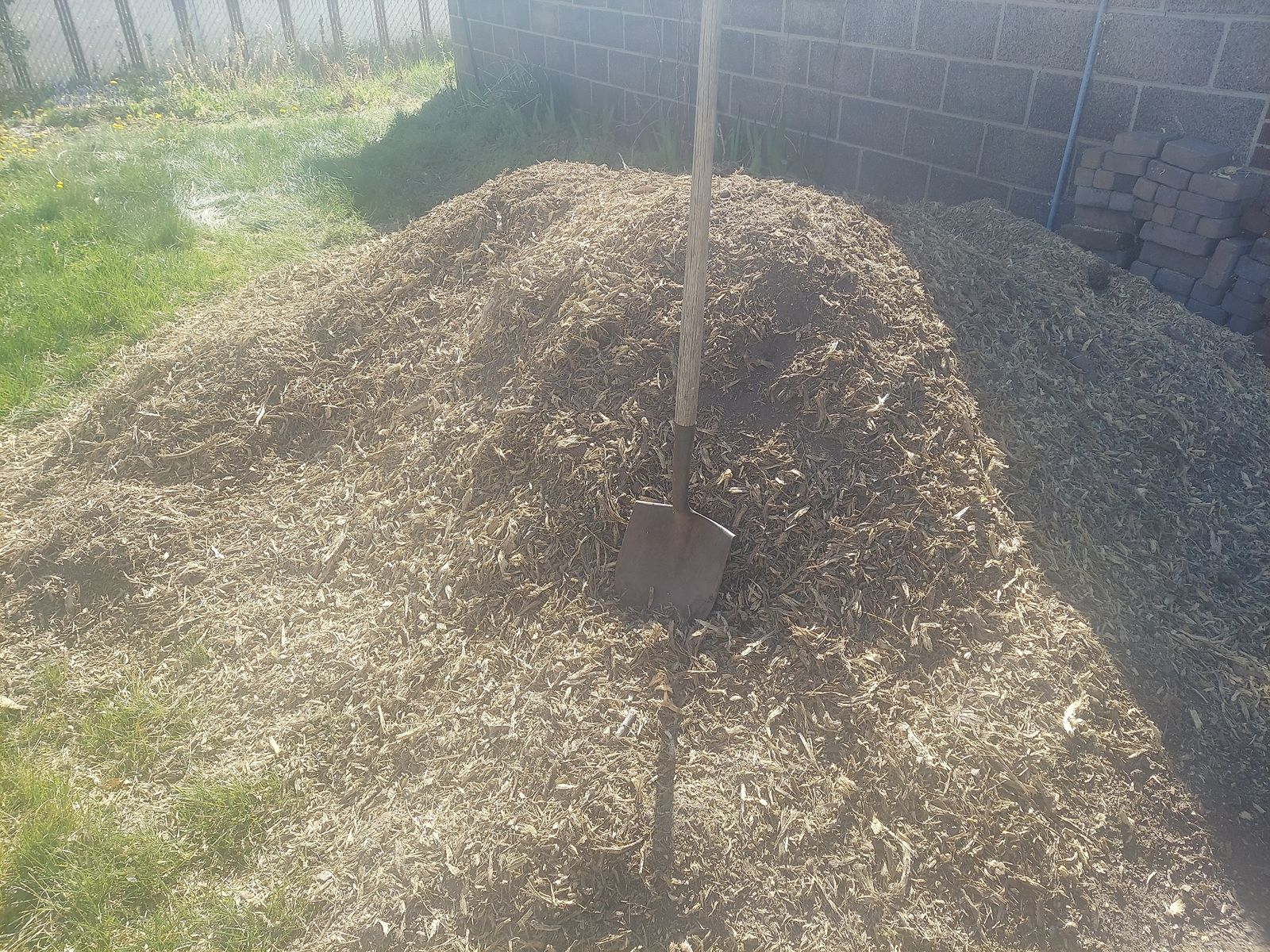 About 8 yards of mulch. Load it yourself, would mostly fit in the back of a full-size pickup. Fresh from a ground up Tree of Paradise stump.