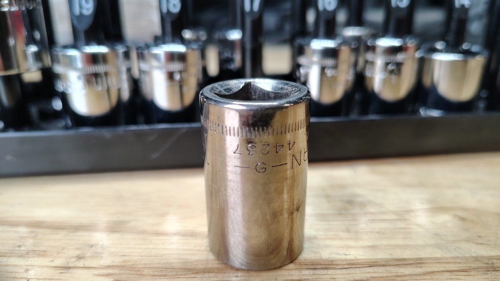 PayPal12 Craftsman "G" and "SA-F" 3/8 drive sockets. The large socket misplaced on the 14 is a 21. Comes with the holder if you want it.