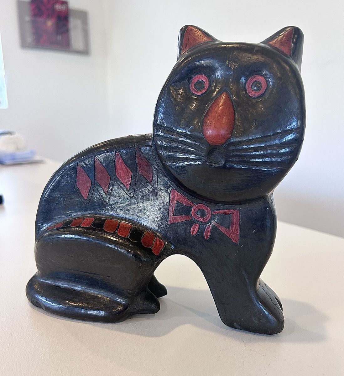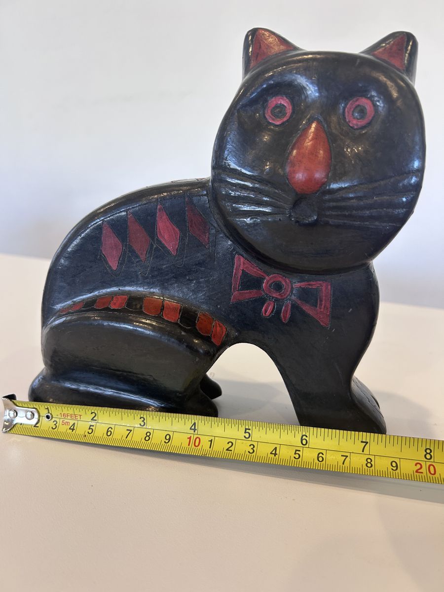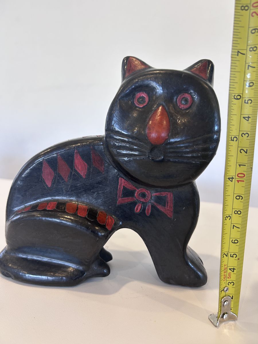 VenmoThe Mexican Folk Art Cat "El Gato" is a handmade collectible item originating from Mexico. This unique piece reflects the rich culture of Mexico through its design and craftsmanship. The intricate details and traditional Mexican elements make it a special and authentic piece for collectors or those interested in Latin American art. With its Mexican heritage and artisanal quality, this folk art cat is a charming addition to any collection.