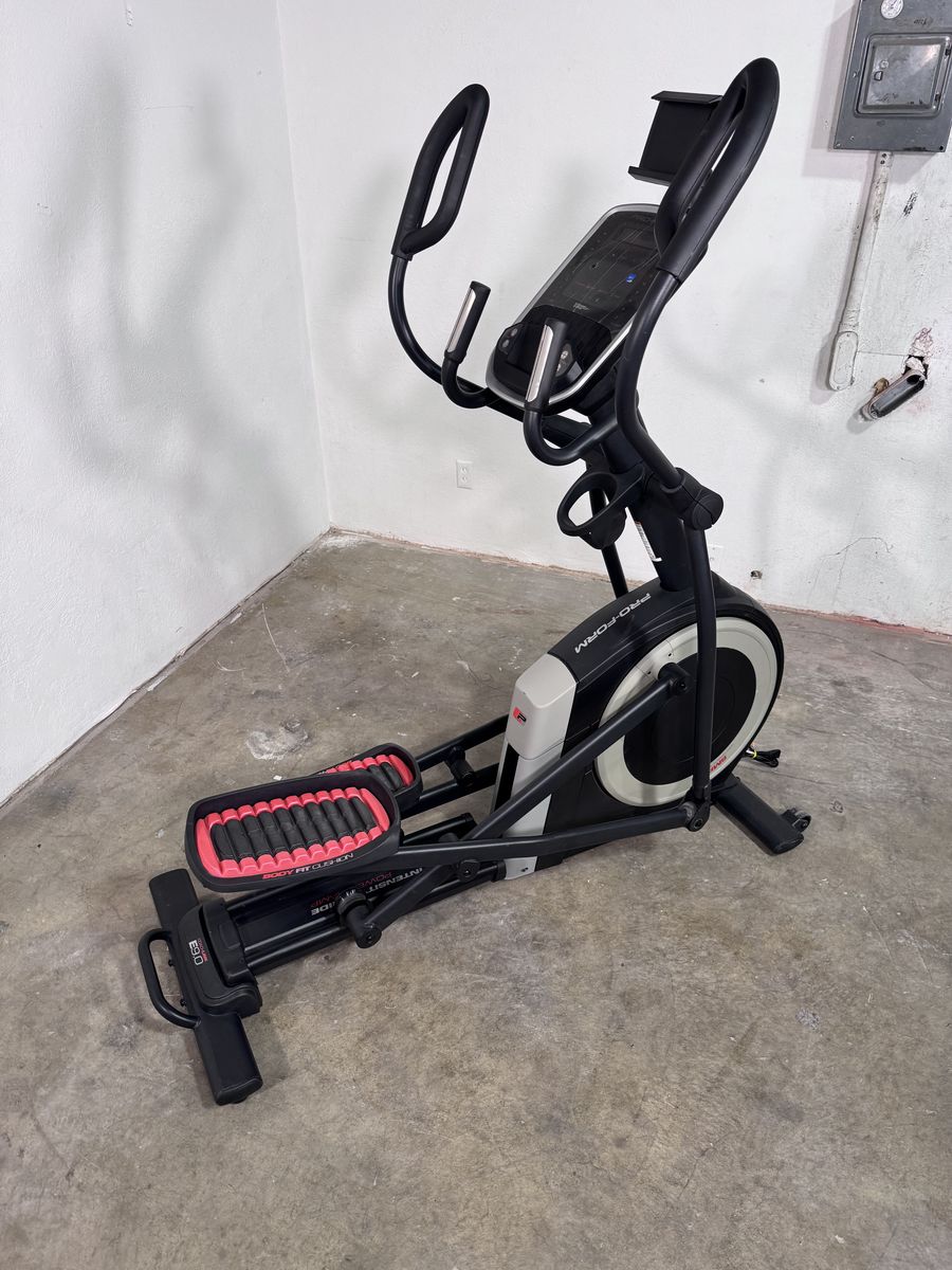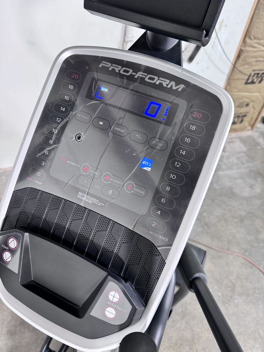 ApplePayProform coach link e9.0 elliptical with iFit compatible tracking, this device is in like New condition only because of storage and transportation scuffs or factory blemishes, this machine was never used to train on and will be an amazing addition to your home gym.