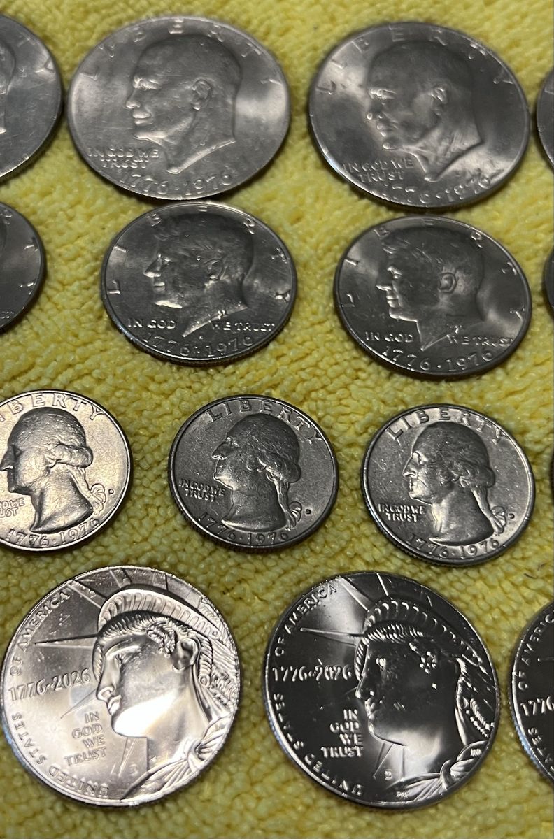 ApplePaySet of 4 BICENTENNIAL and SEMIQUINCENTENNIAL COINS. Bicentennial EISENHOWER DOLLAR, JFK HALF DOLLAR and WASHINGTON QUARTER and a BU UNCIRCULATED SEMIQUINCENTENNIAL HALF DOLLAR. Four coin set. Bicentennial coins are normal circulated condition Asking $10 for all five coins.