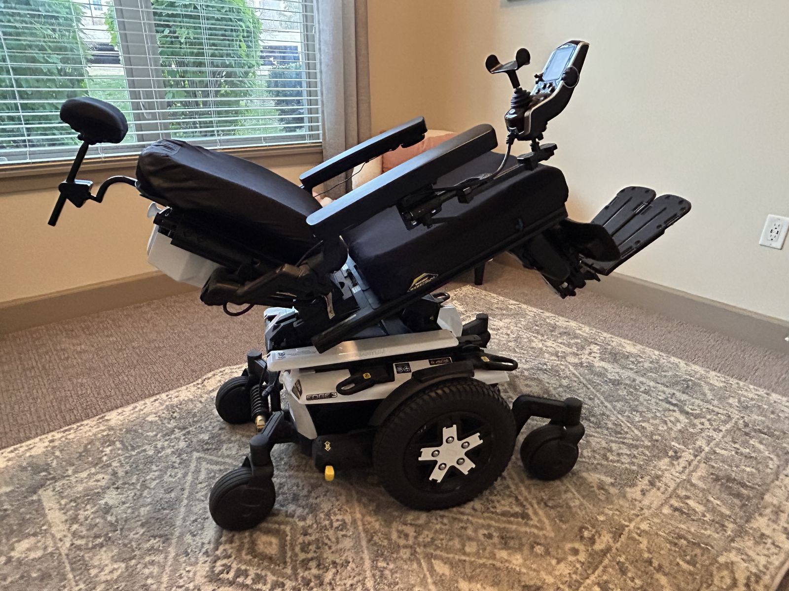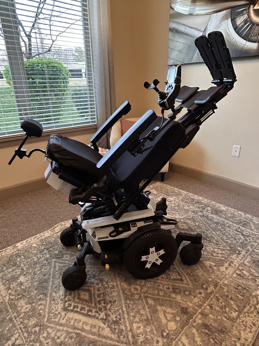 Excellent condition. Lightly used. Quantum Edge 3 power wheelchair. This is a high-end rehab chair, not a basic power wheelchair. Is ideal for comfort, positioning, and all-day use. The tilt, recline, and elevating legs make a huge difference compared to basic chairs. Runs smooth, turns tight, and is very comfortable for daily use.