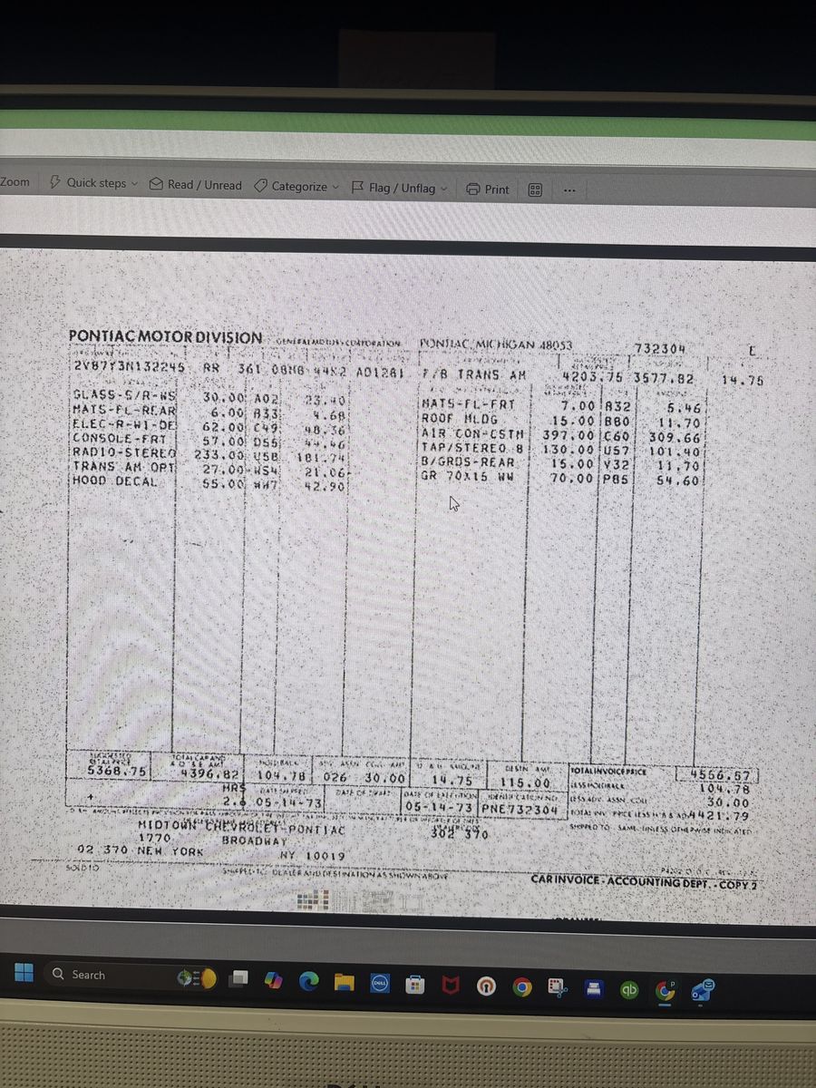 1973 T/A, 455 automatic, very nice body