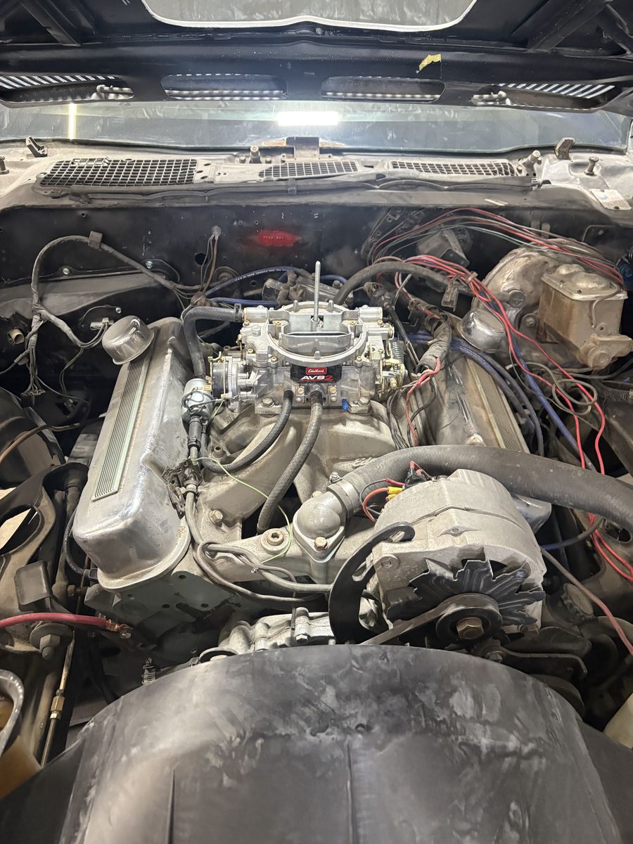 good running 455 the engine is from a 74 YY code. It has an after market aluminum intake and carb but will come with a Pontiac cast iron intake and a Rochester carb (to make the shaker fit correctl.