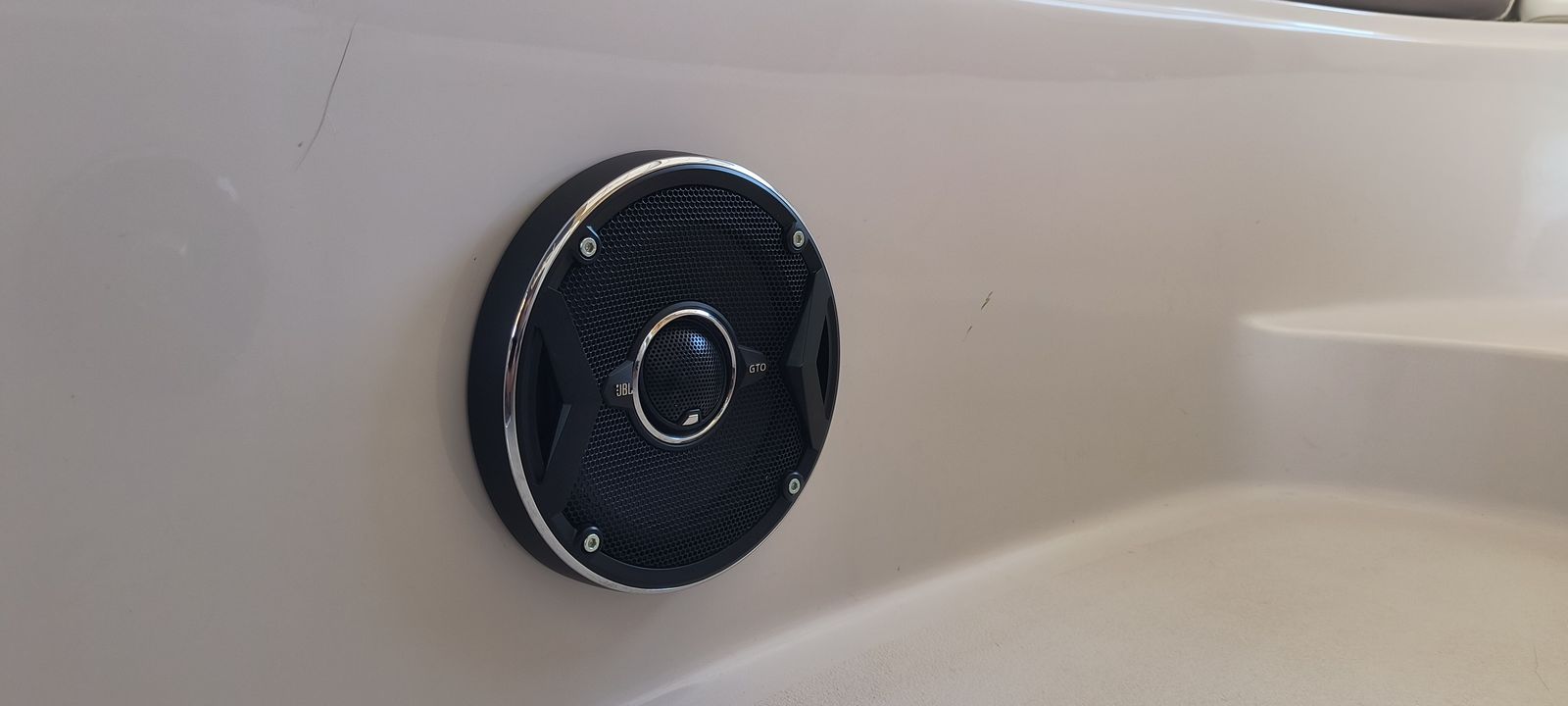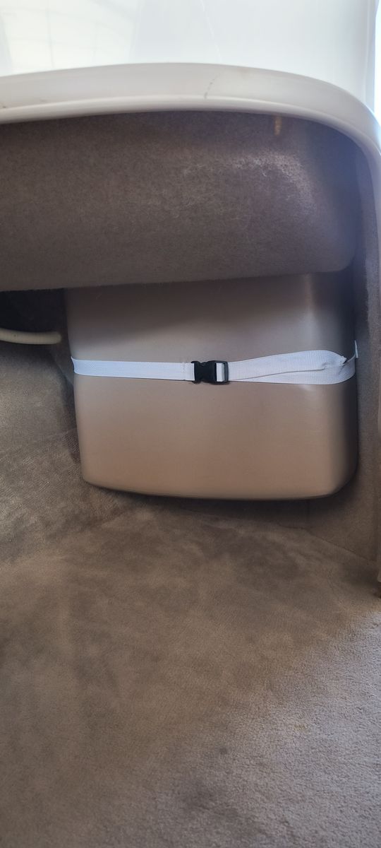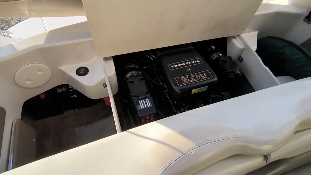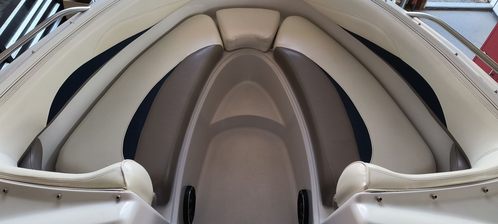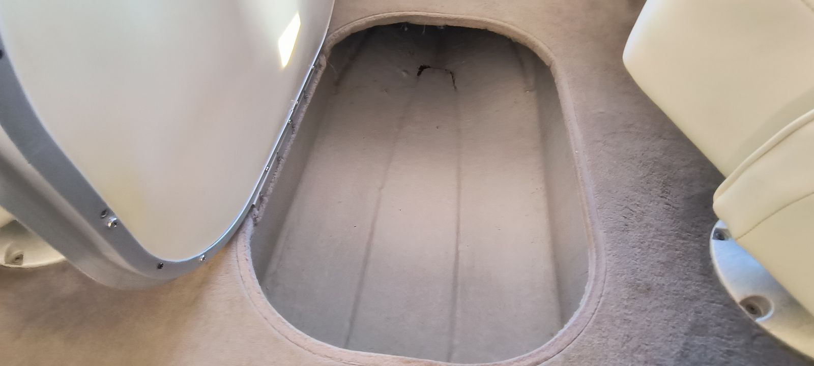 Rear bench folds down into bed with storage under it. Large storage area on either side of the motor. Ski locker. Captain seat's, Front benches have auxiliary cushions that make it into a second bed.