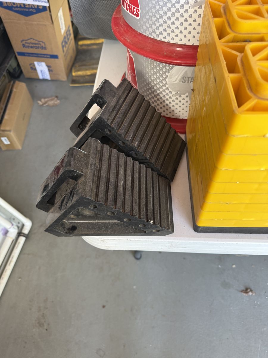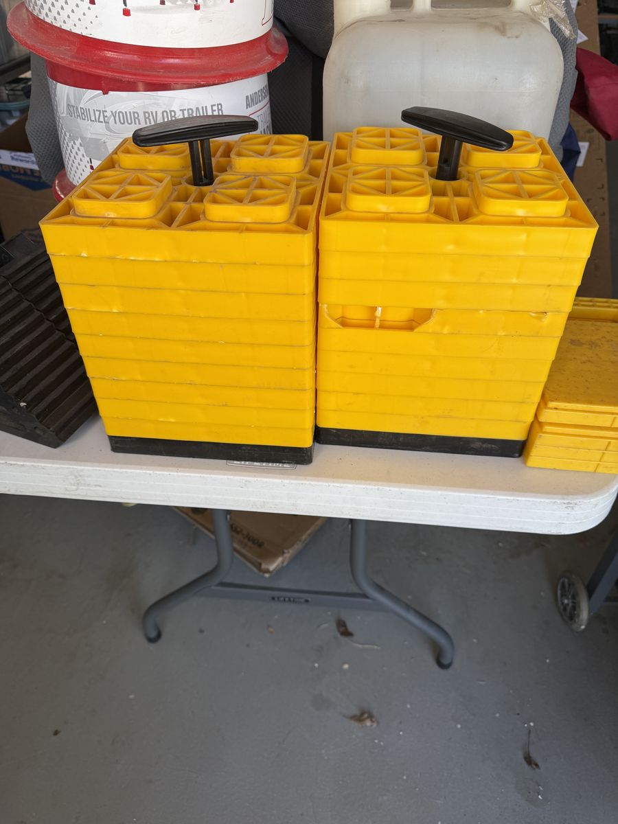 ApplePay(3) Anderson blocks $40 each (2) sets yellow leveling blocks $20 each (1) transfer hoses and device. $20 (2) 5 gallon water jugs $10 each (1) 10 x 15 sun shade $30 New never used (2) wheel chocks $7 both