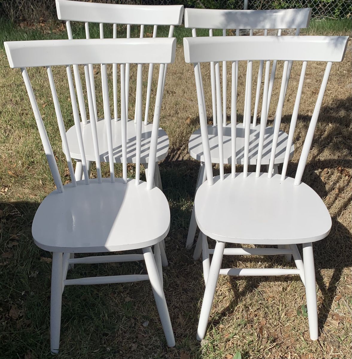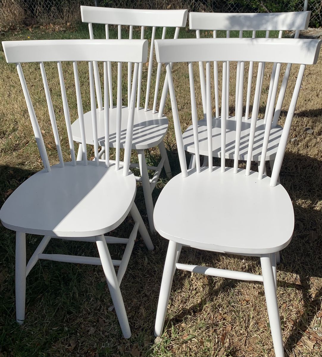 VenmoBeautiful set of 5 white Windsor farm style chairs 18 in from floor to seat Great condition There’s only 4 in the picture but there’s 5 total Can deliver