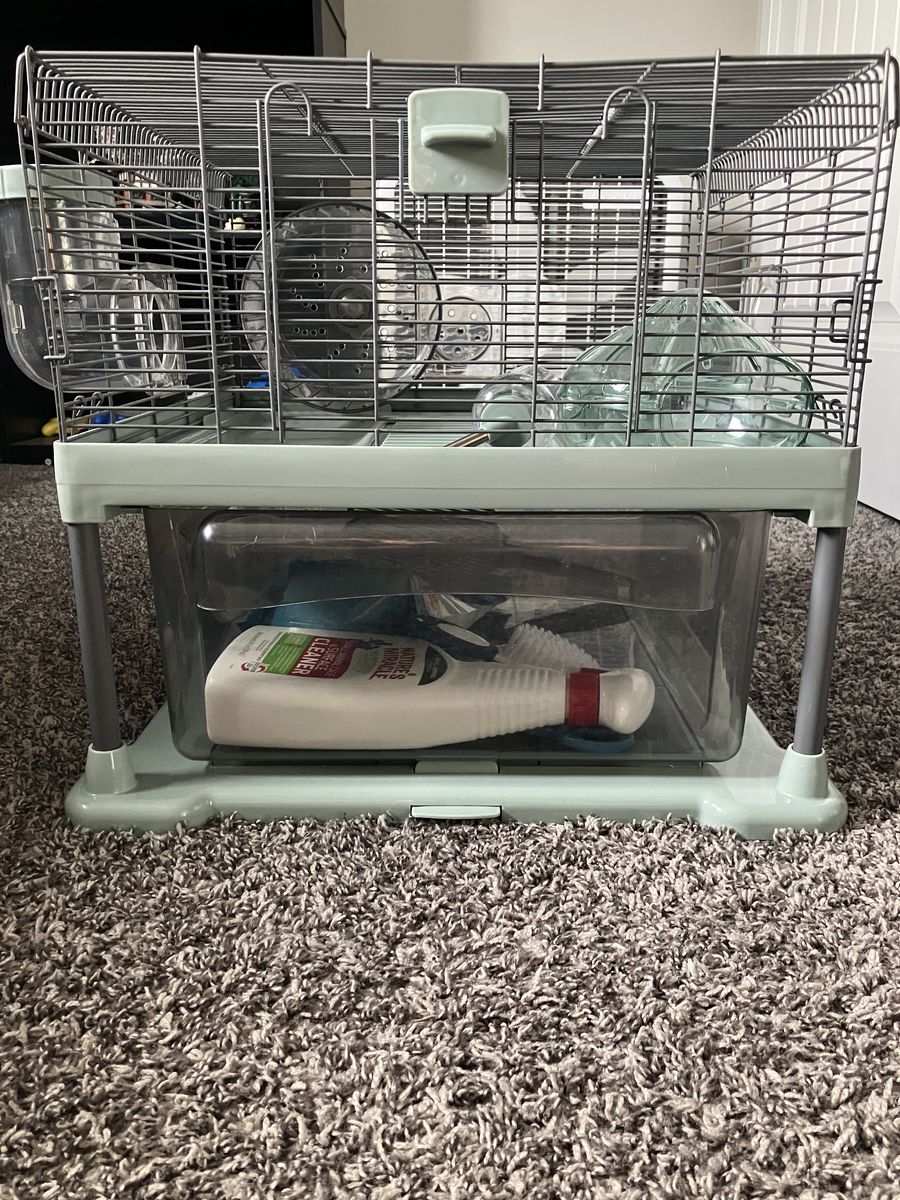 ZelleBrand new, never used. We decided not to get a hamster after all. Sold as bundle. Missing water bottle holder.