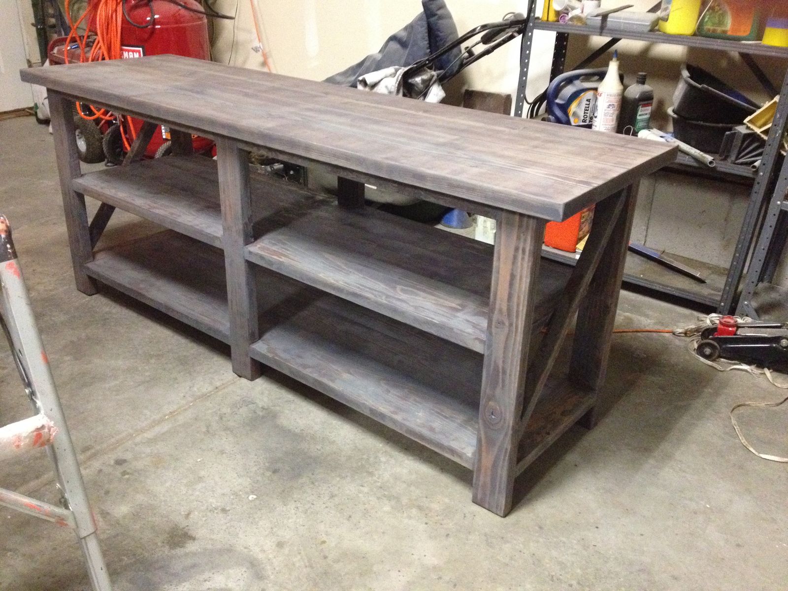 Venmo63” long by 30” tall. Solid heavy wood. In near perfect condition with only a small black ink stain. I’ve used this as a console behind my office desk but would’ve great for a tv or kitchen buffet or sideboard.