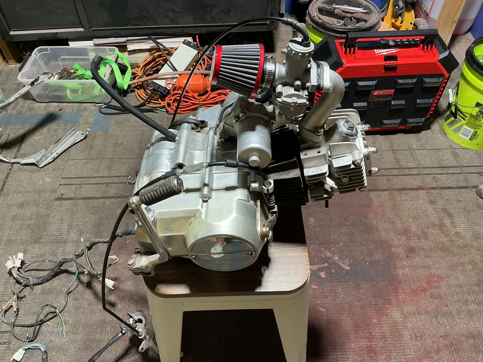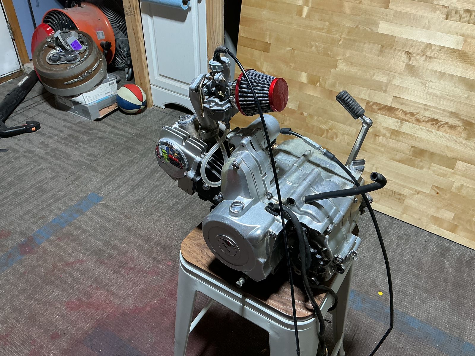 CashApp212cc 4 speed snap on motor has main wiring harness clutch cable,brake cable,choke cable,air filter all hoses. Starts right up great compression