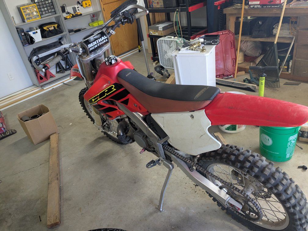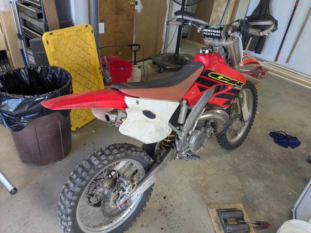 Really clean 2000 Honda CR250. I bought this bike from my buddy in 22, subsequently had 2 kids, and thus have ridden it about 5 times in that period. It's a shame too because its a great bike. Starts right up, runs great, has lots of power, and is just fun but again, don't have the time to ride it at this stage in my life. Lots of life left in the tires and has an Endurance computer. I'm sure the forks could use some love soon but overall just a great bike that needs a loving home. Title in hand