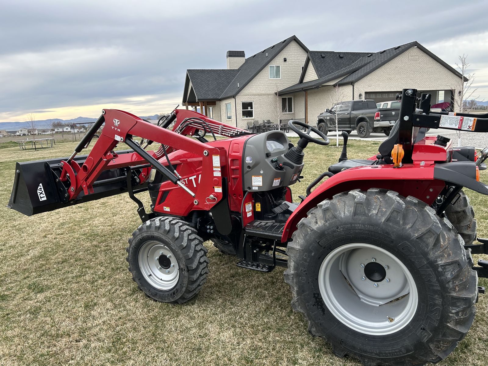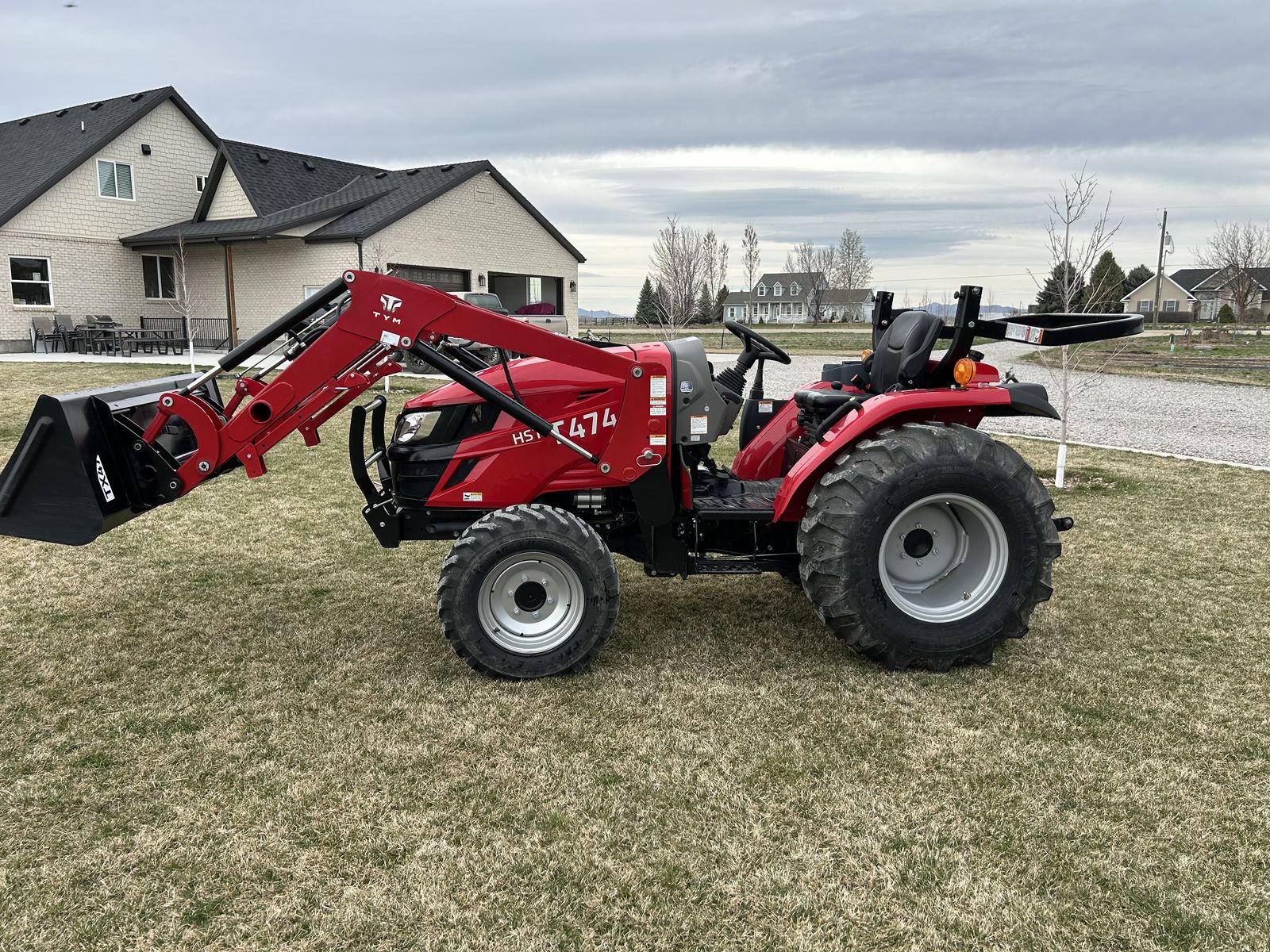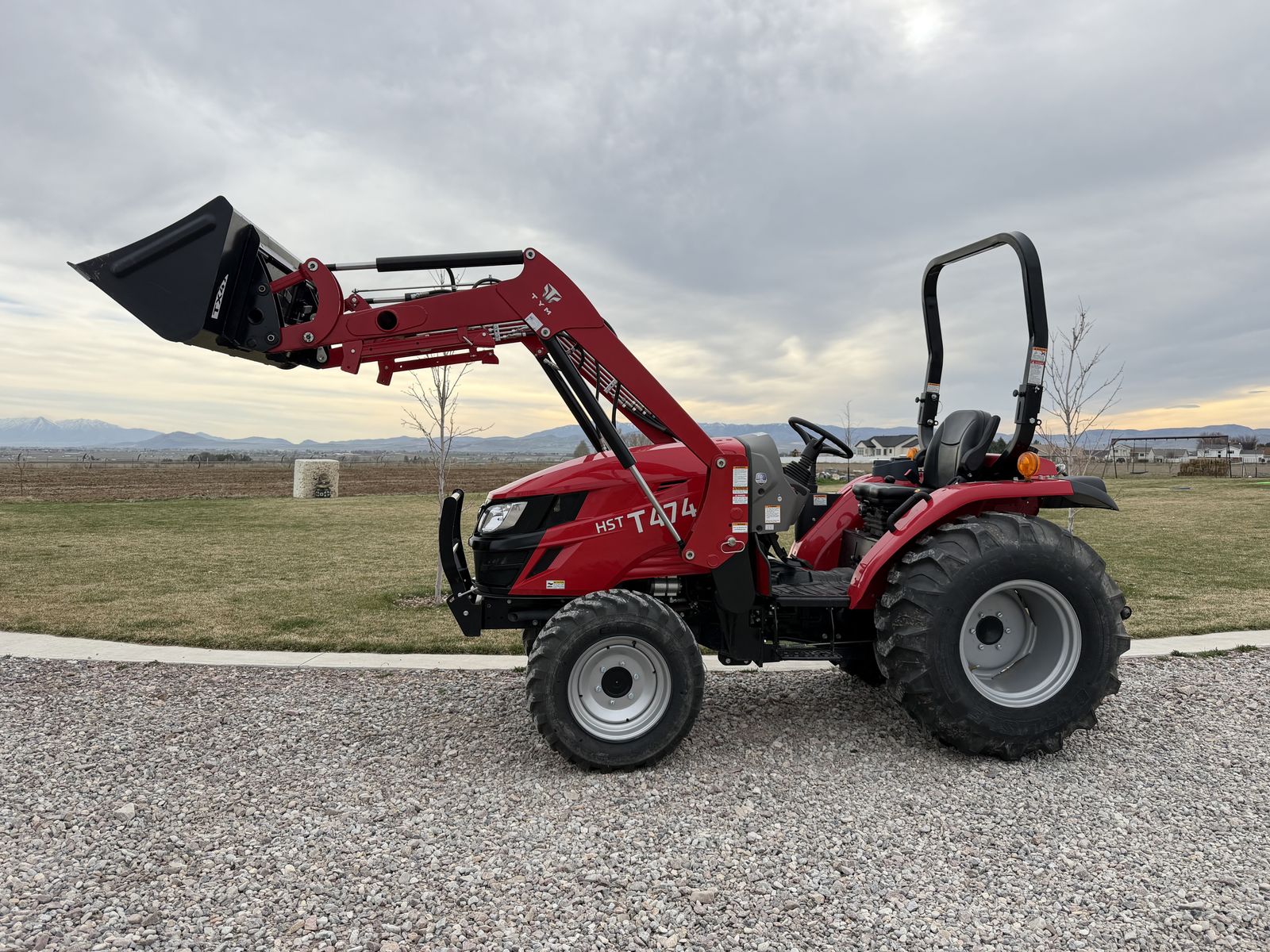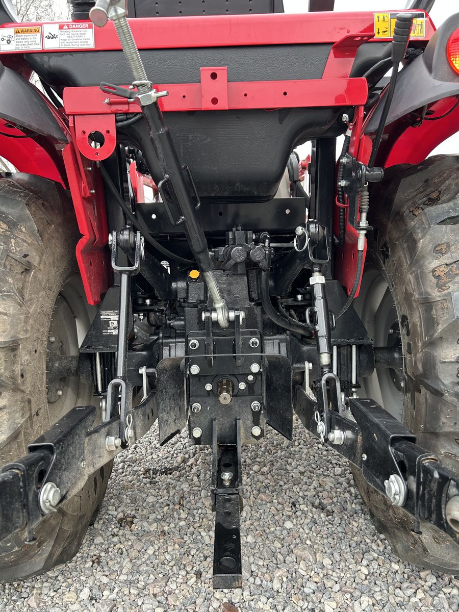 This 48.3 HP tractor features a 3-range hydrostatic transmission, 4-cylinder kukje diesel engine (tier 4 compliant) and 2600 lb 3-point hitch lift capacity. Kukje has supplied engines to companies like Cummins for over 30 years. Designed for versatile, common medium-duty tasks, it offers options for an ROPS or a fully enclosed cabin, with excellent maneuverability for tight spaces. Lift capacity: 2,689 lbs at the 3-point hitch. The PTO has 35.9 HP to 540 RPM rear PTO. Comes with a TX47 front-end loader. Parts and labor for the drive train are still under warranty until 2028.