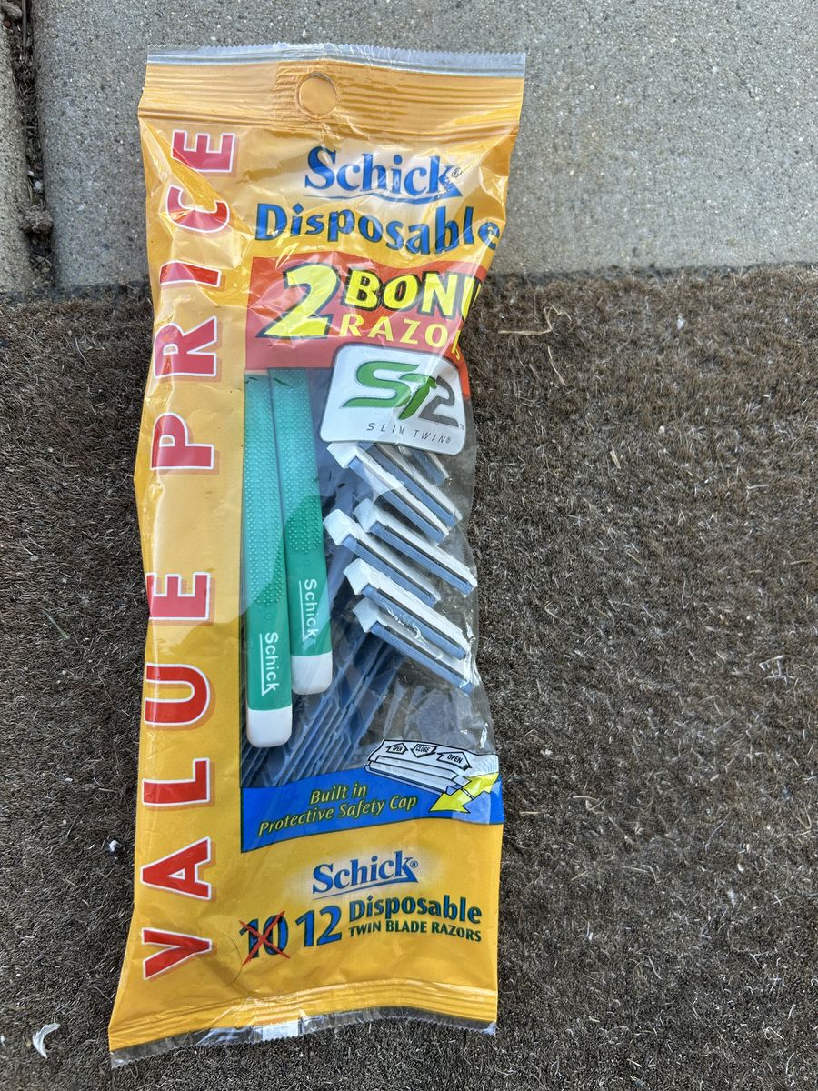 VenmoNew in the package over 50 Schick disposable twin razor blades. Perfect for men or women. Clean smoke free home. Cash or Venmo. Located in and picked up from Alpine Utah.