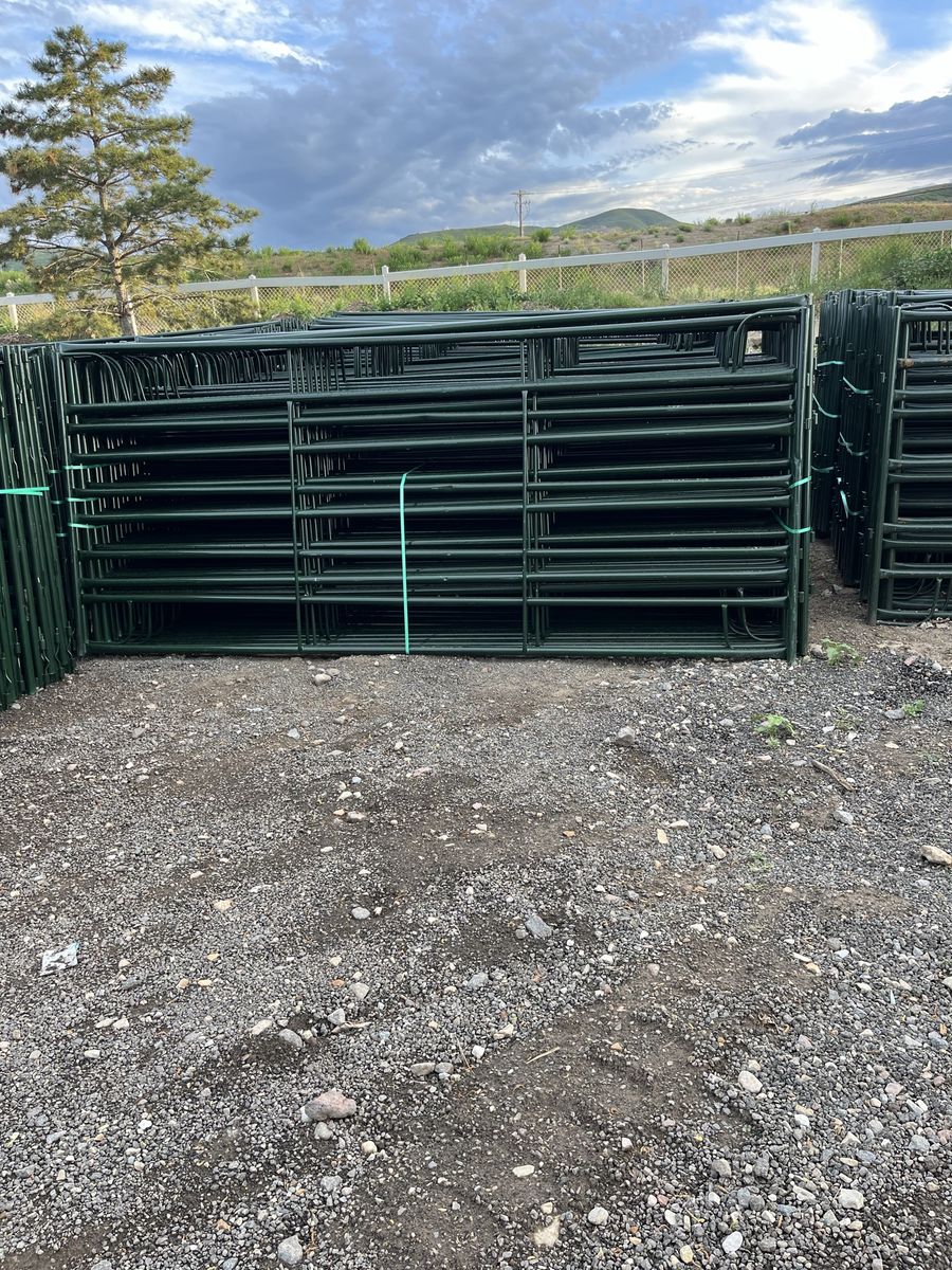 Five rail powder coated panels with pins attached for quick and easy assembly. Time to set up your round pens and corals. All sizes and prices are listed below and are available for pick up or delivery at an additional cost 5x12 panels $115 each 5x10 panels $95 each 5x6 panels $85 each 5x4 panels $80 each 4 foot bow gate $165 each 6 foot bow gate $185 each