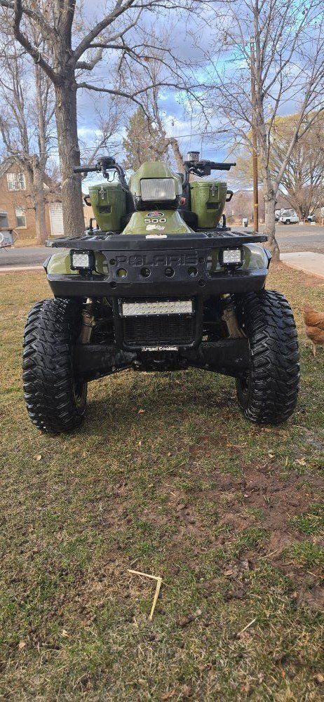 4x4 works Liquid cooled 500 Good tires Front LED light bar + pod lights Front/rear racks Storage boxes included Heated Handle Grips (work great)