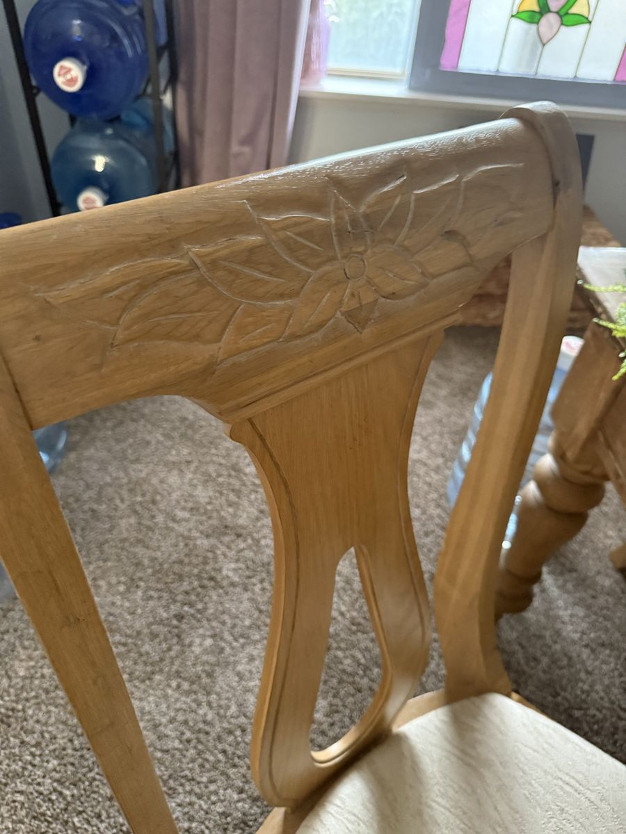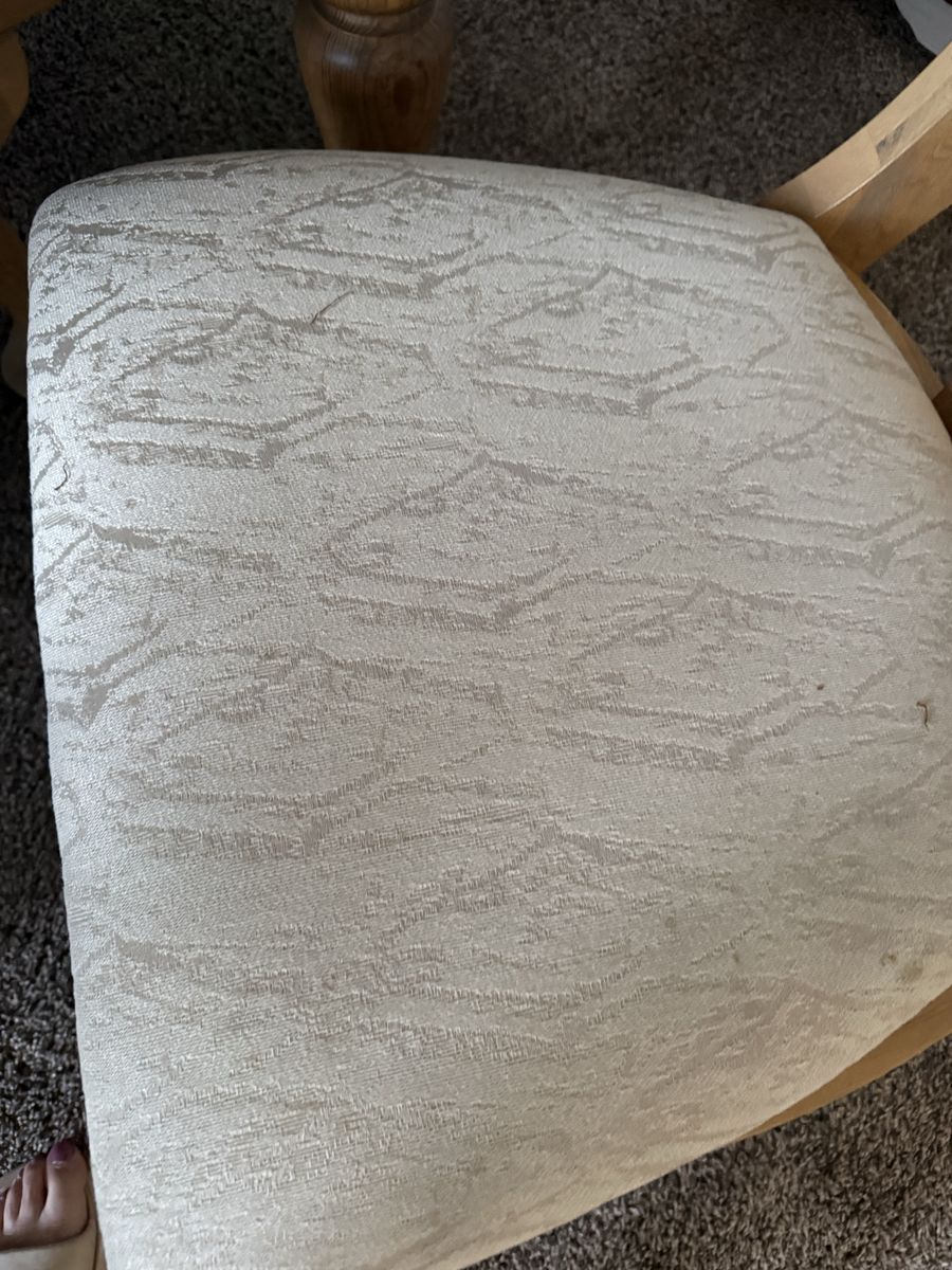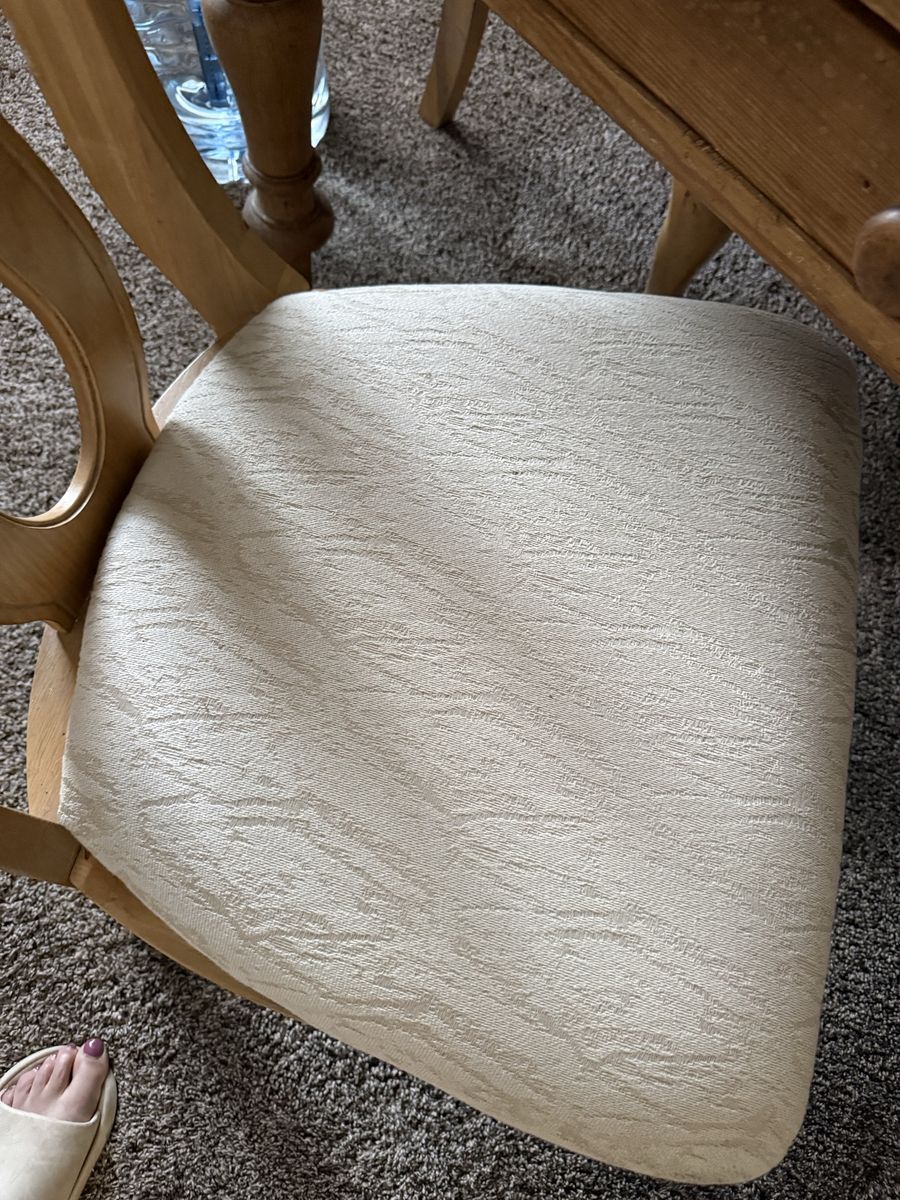 VenmoSix solid wood dining chairs with a cream, beige seat no stains in great condition