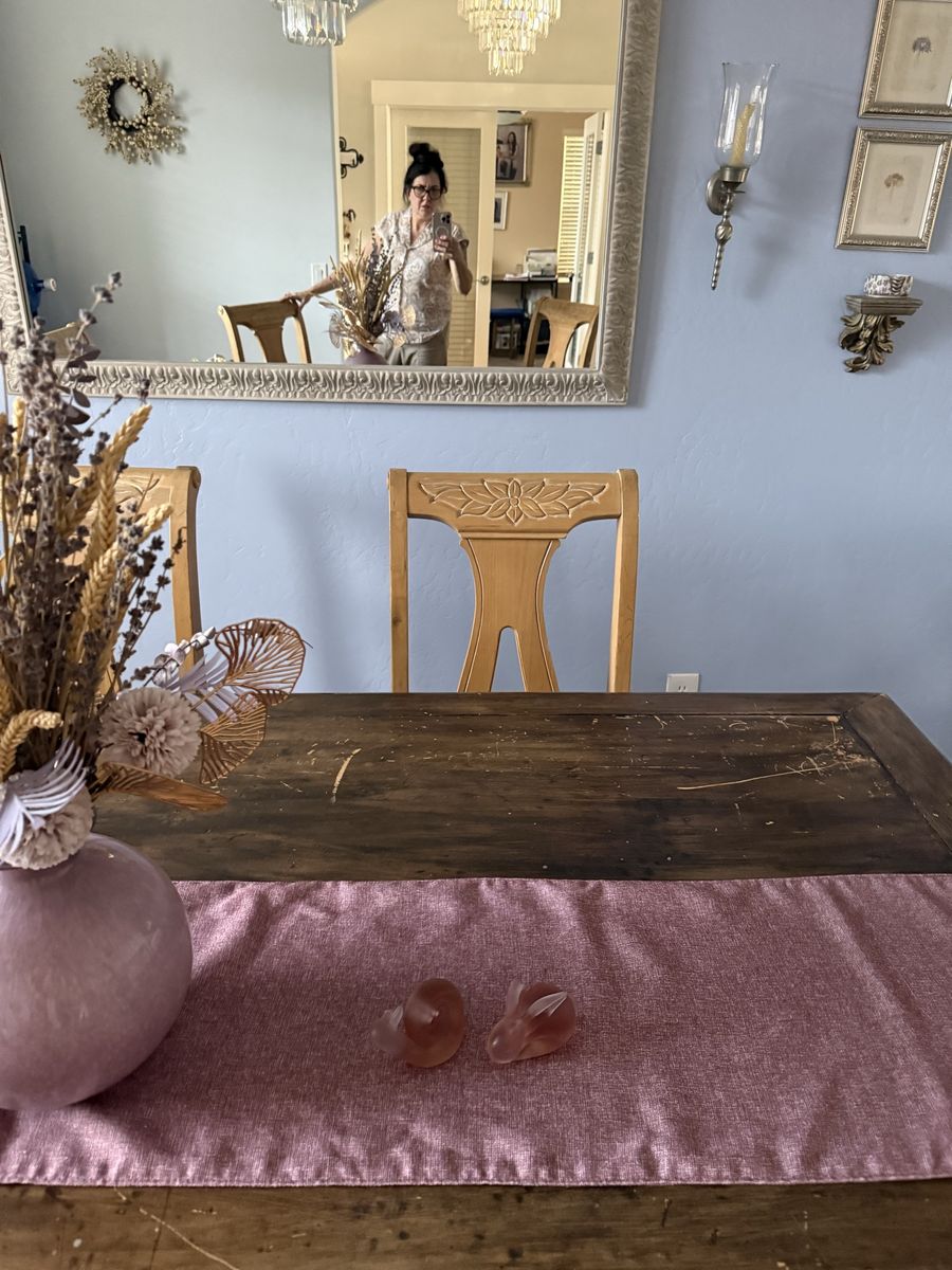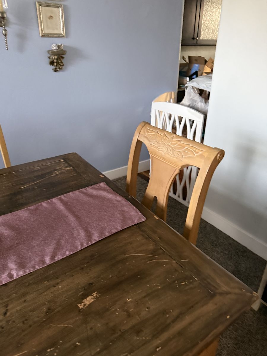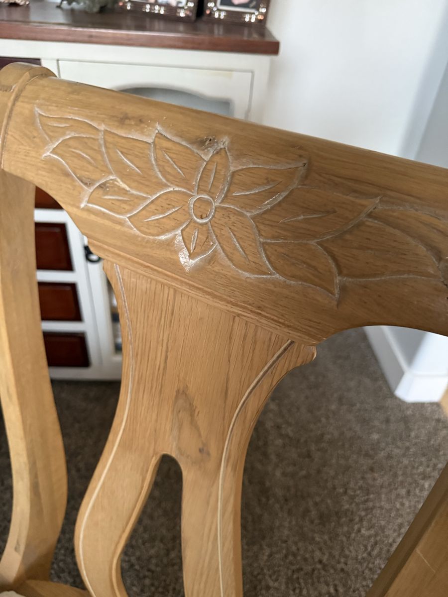 VenmoSix solid wood dining chairs with a cream, beige seat no stains in great condition