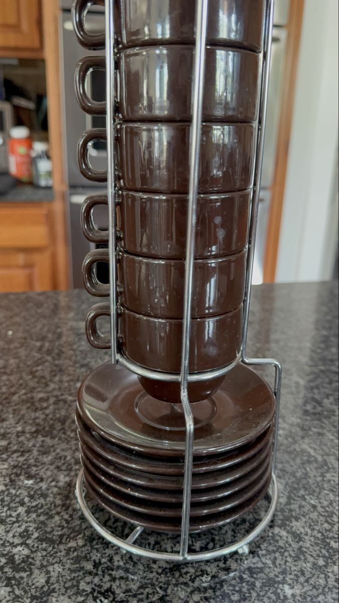 ApplePayBeautiful Italian Brown shot espresso shot mugs and saucers with a holding organized unit