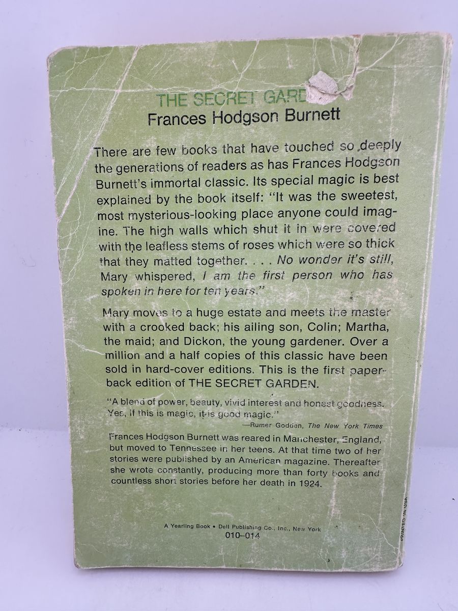 ApplePayVintage 1973 Dell Yearling paperback edition of The Secret Garden by Frances Hodgson Burnett, featuring classic illustrations by Tasha Tudor. This beloved children’s novel tells the story of Mary Lennox and her discovery of a hidden garden that transforms lives. A nostalgic collectible with original cover art, perfect for readers, vintage book collectors, or classroom use. Shows significant wear consistent with age but remains a complete and readable copy.