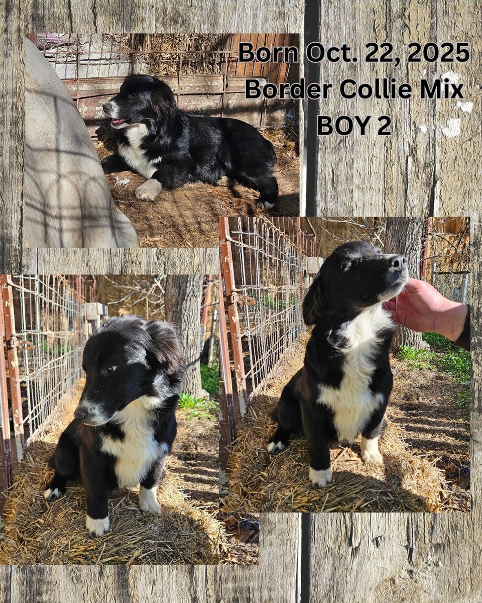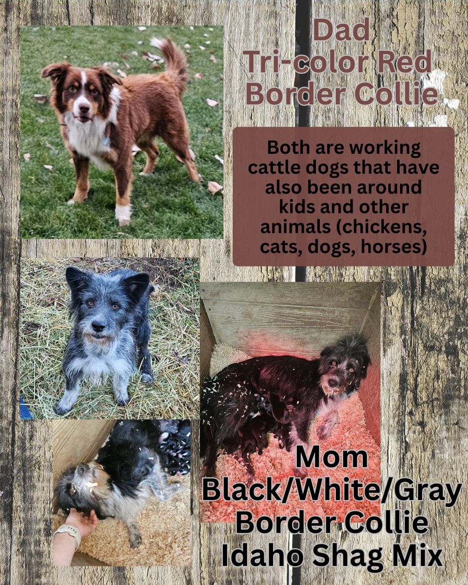 I have 2 4 mo old grade border collie pups 2 males named Bill and Ted and a 2 year old grade bc male named Chunky. Younger dogs have a tiny bit of shag Chunky has a tiny bit of catahoula. Pups have a bunch of siblings that are on working ranches and are starting training and are also making good family dogs. Chunky is not working the way i like my dogs to work but I have limited time, he'd be a good family dogs or if ya want to try him out on cows maybe he'll work for you. He has a lot of drive and wants very little finesse. Does pretty good with my kids.
