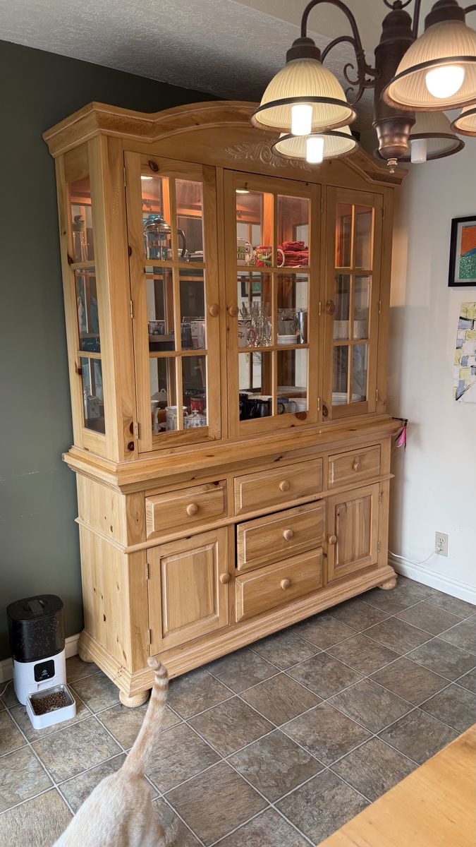 VenmoBeautiful Amish-Made Solid Wood China Cabinet / Hutch for Sale Crafted with exceptional quality and attention to detail, this Amish-built cabinet is made from solid wood and built to last for generations. It features a classic, timeless design that fits perfectly with farmhouse, traditional, or rustic décor. • Dimensions: Approx. 5 ft wide × 7 ft tall × 1.5 ft deep • Condition: Very good – well cared for with only minor, normal wear • Solid wood construction (no particle board) • Spacious lighted upper display with glass doors (perfect for china, décor, or collectibles) • Lower storage with drawers/cabinets for added functionality This is a high-quality, heirloom piece that offers both beauty and durability—far superior to mass-produced furniture. Matching Amish-Made Solid Wood Dining Table & Chairs – Project Piece A quality Amish-built solid wood dining set with great bones and timeless craftsmanship. This set is built to last and would be stunning again with a little TLC. Classic style – perfect for farmhouse or traditional spaces • Dimensions: 5 ft long x 3 ft 4 inch wide x 2 ft 6 inch tall with 1 ft 6 inch x 3 ft 4 inch leaf • Heavy, sturdy construction (no particle board) • Includes solid wood table + matching chairs + leaf Condition: • Table shows noticeable wear and would benefit from refinishing • Chair upholstery is worn and should be replaced • Structurally solid and well-built This is a great opportunity to own high-quality Amish furniture at a fraction of the price—perfect for someone who enjoys refinishing or wants to customize the look. Asking: $800 for China Cabinet $300 for Table and all 6 chairs $1000 takes all Location: Cottonwood Heights