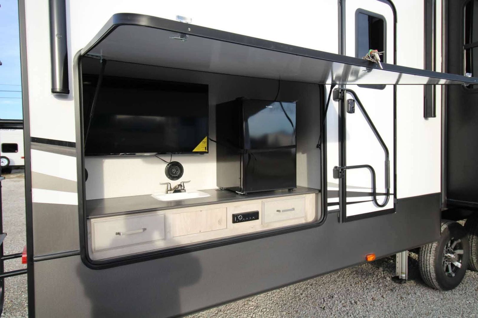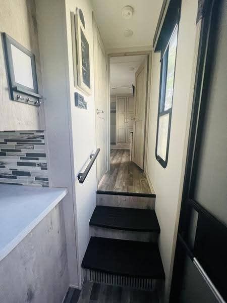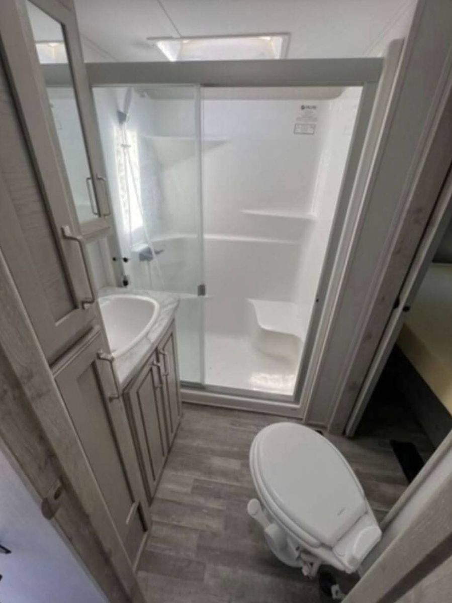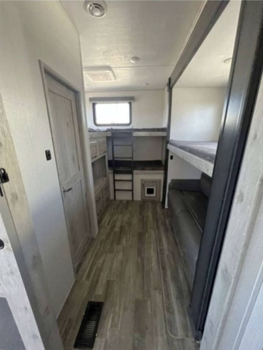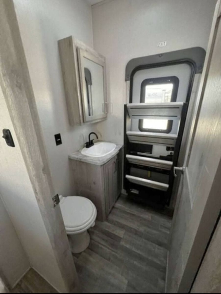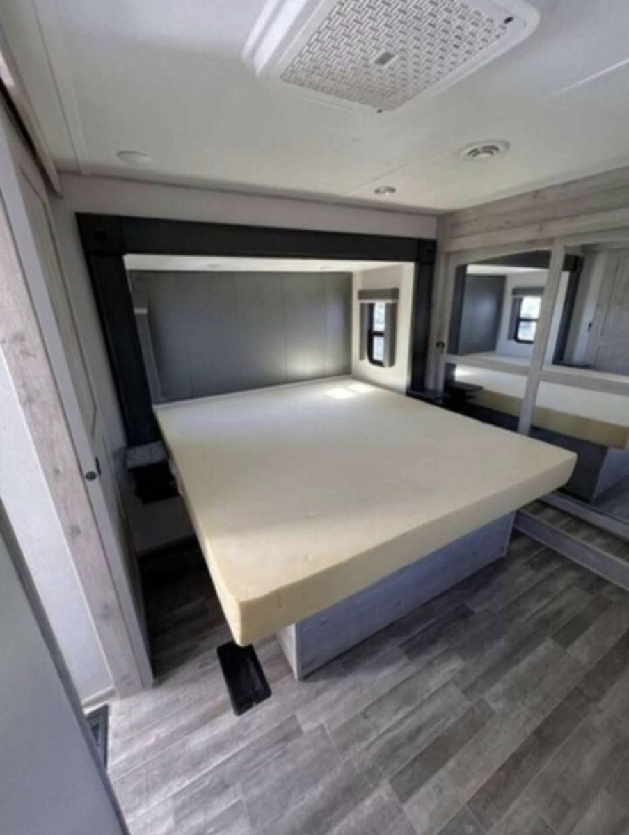 Key Features & Upgrades Private bunkhouse with its own half bath – perfect for kids, guests, or a home office Stackable washer & dryer in the master bedroom – rare and extremely convenient Solar panels – off-grid capability and peace of mind Automatic leveling system – quick and easy setup every time Residential-size refrigerator – no RV-size compromises Outdoor mini fridge & TV – ideal for entertaining and outdoor living Living room couch converts to a pull-out bed – additional sleeping space Exceptional storage throughout – inside and out