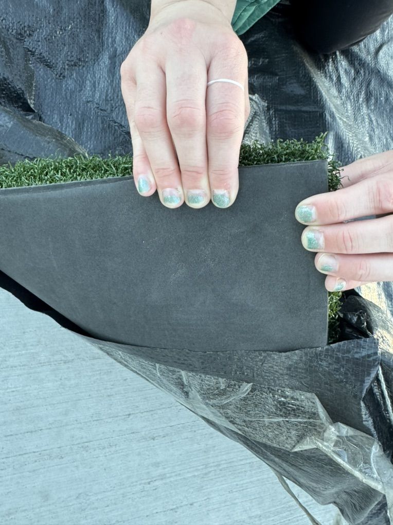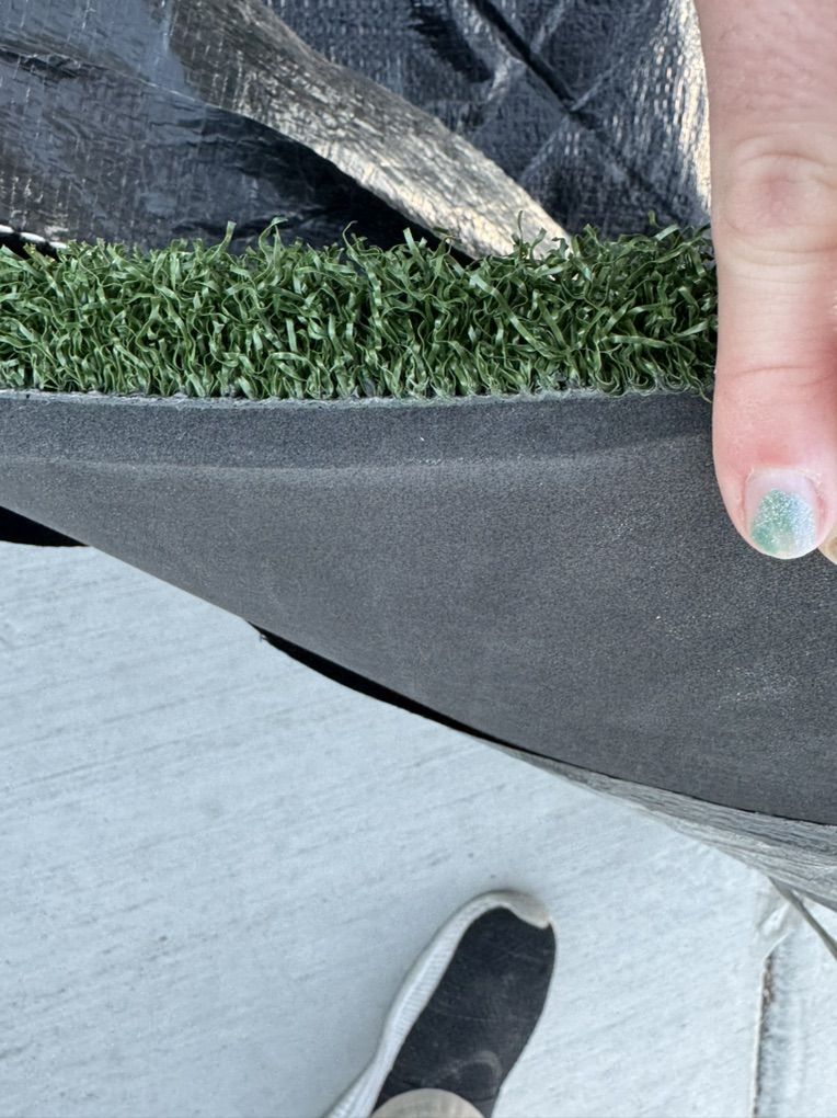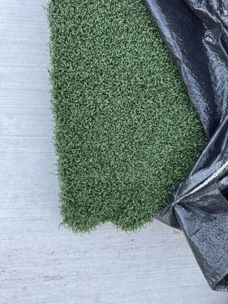 PayPalThese artificial turf squares are not your typical Amazon grass rugs. These are heavy with a dense turf that is about an inch thick backed by a 3/8 inch of flexible rubber backing. This is the stuff that schools and city parks put down to help protect kids from falls on playgrounds.