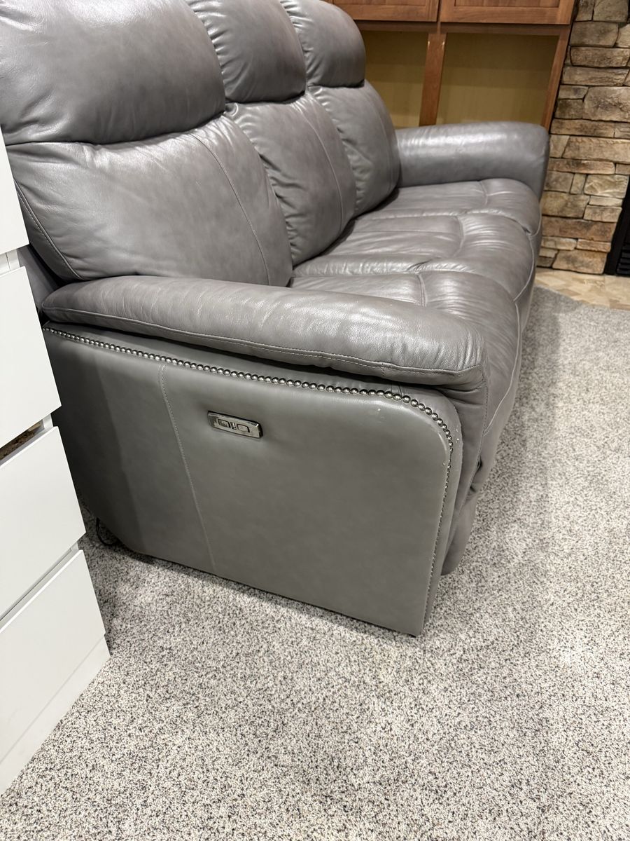 VenmoGray leather sofa with adjustable features. Electric no rips, no tears very comfortable.