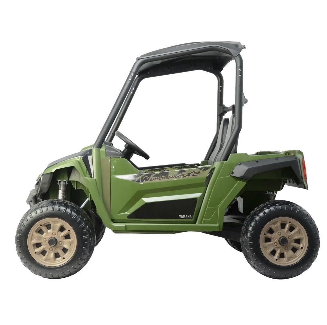 -The officially licensed 24V Yamaha Wolverine X2 UTV ride-on toy is designed to look just like the real thing. It features a working LED headlight, horn sound and motor noises, and large wheels with a Suspension Function. The doors are functional and the seat is adjustable, making it ready for two kids to play together inside.