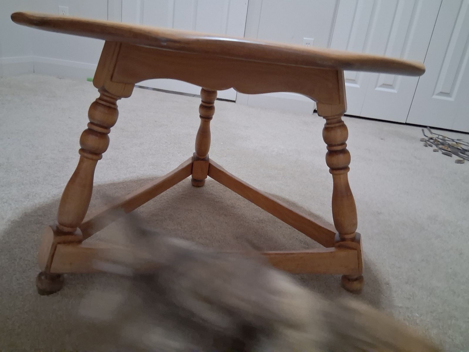This beautiful table is 1' 17" tall, 17" wide. Very versital