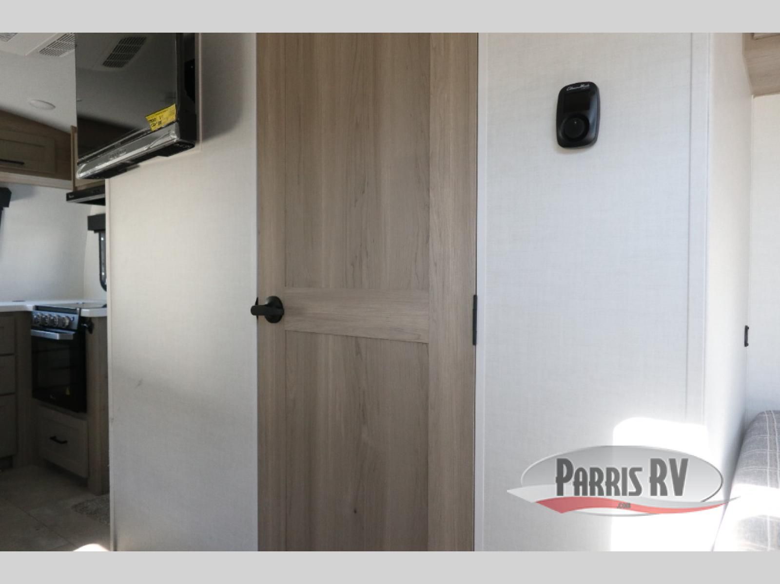 Are you looking for a lightweight trailer with at-home comforts? Take a look at this single slide out unit that can sleep three to four each night. There is a queen-size bed in the back with a 26" x 80" flip-up bunk for cozy sleeping space, a 72" sofa with cupholders to relax on, plus a 12V TV for movie nights! The front kitchen includes a 12V refrigerator to store food, plus a microwave oven and a gas oven to cook meals each day.