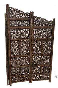 VenmoNew - MayKoosh Renaissance Revival Hand Carved Foldabale Wooden 4-Way Room Divider, Brown.