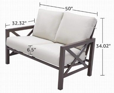 Fully assembled! Missing the 2 bottom cushions. Cushions are 23"x23"x6.5".