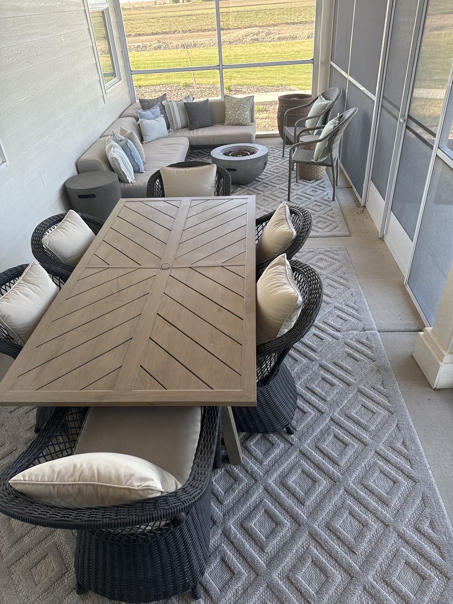 VenmoI have these two light gray diamond pattern Johnathan Y outdoor rugs. (Indoor too) we have had them only one year in a screened porch. We pressure washed one of them and is drying (pictured) and the other one is rolled up ready to go. In great condition. Smoke and pet free home. Just going with a different style in my porch instead. They have a good pile to them and makes them so soft underfoot. Easy to vacuum up and keep clean. Pressure washed beautifully.