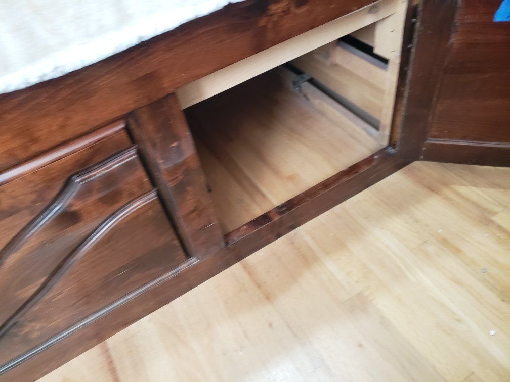 Moving, must sell asap. Dark, Cal King bed, w/ mattress, storage. Nice bed. I can't take it. $150 obo. Cash only. located in Taylorsville. Dennis 385 240 7203