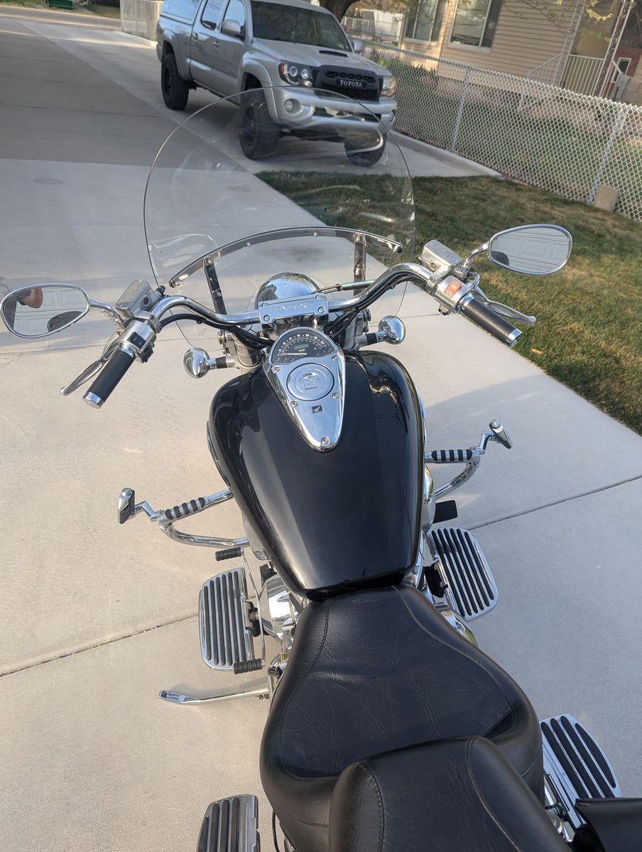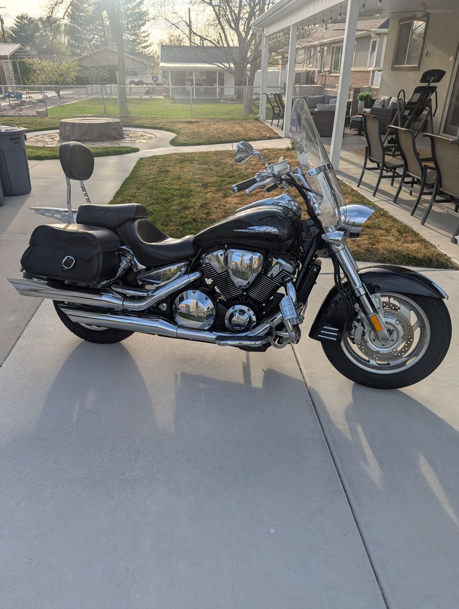 Beautiful Honda VTX 1800. All black and chrome, garage kept and babied, under 15k miles. Super comfortable aftermarket Mustang seats with passenger backrest and highway pegs for those longer trips.