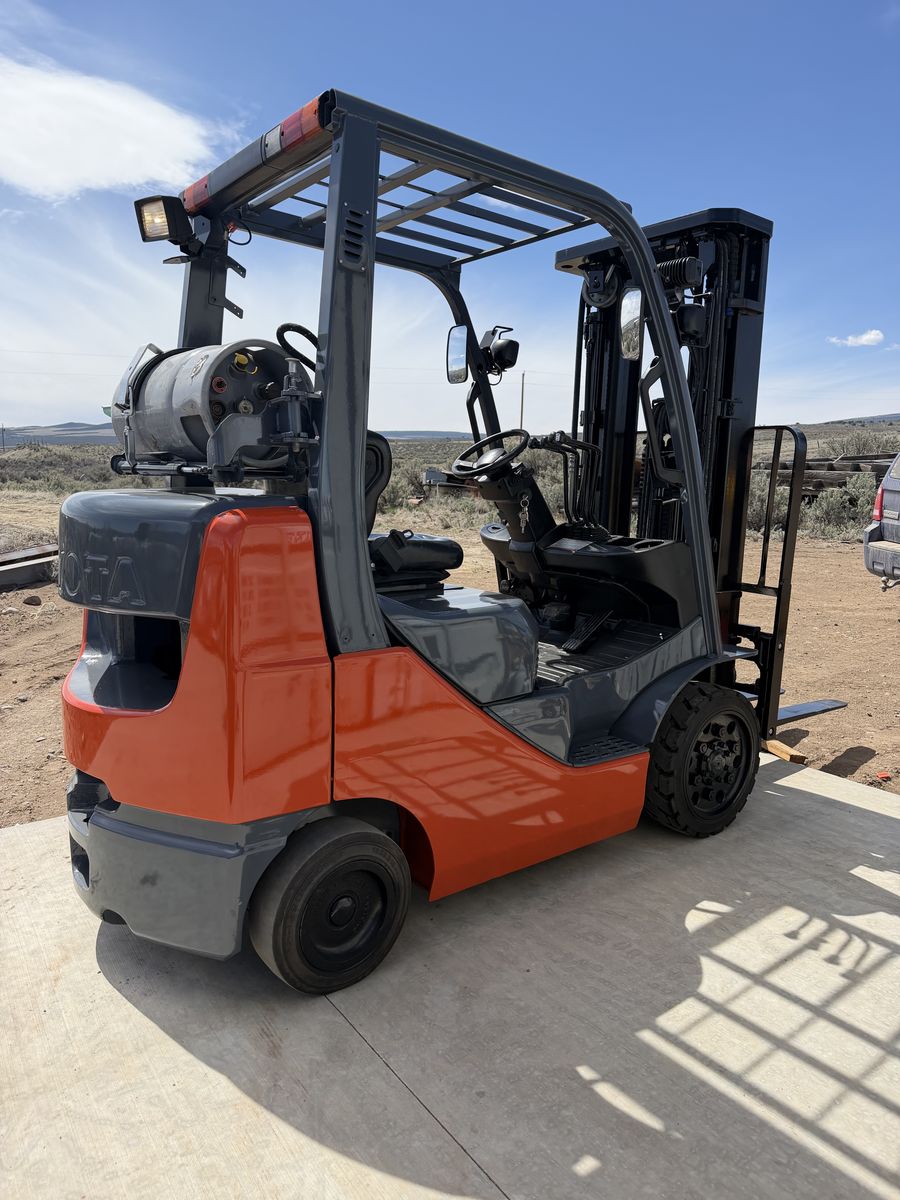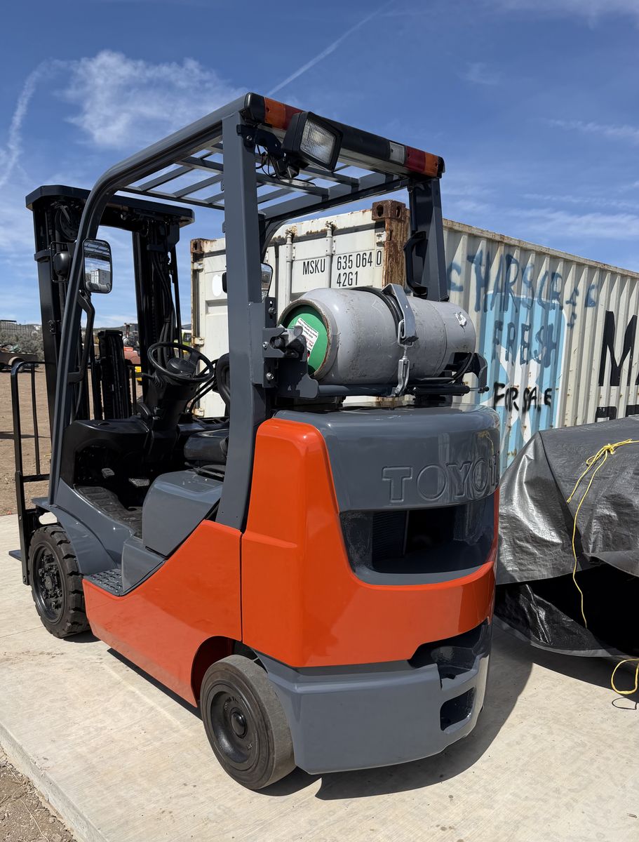 8 series 5,000 lbs capacity Triple stage mast 189” lift height Side shifter & fork positioners Propane powered Fully serviced New paint and tires