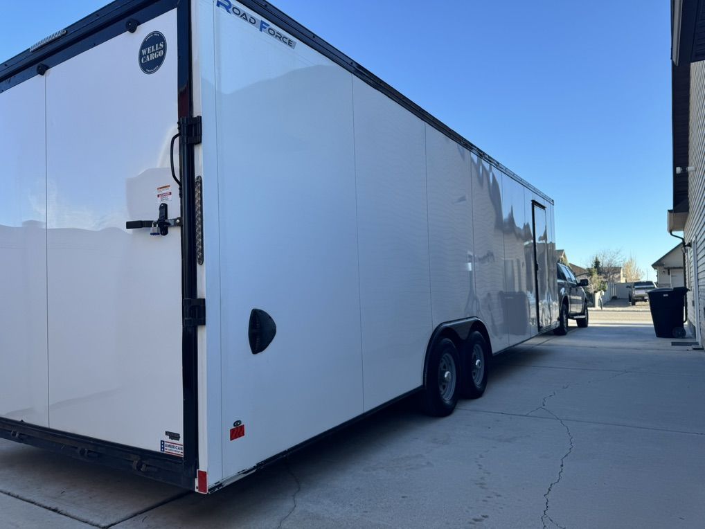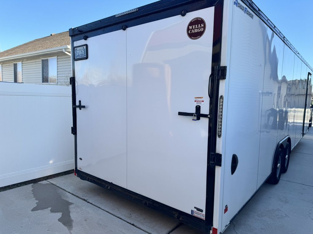 2023 Wells Cargo, Road Force car hauler 8.5x28’ Heavy duty trailer with full Rhino Line frame Dove tail rear door Track system on floor Three new extra tires and wheels Ready to hit the road Title in hand