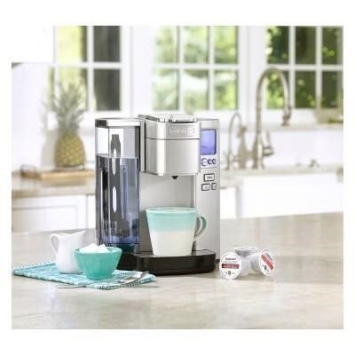 Retailer's Title: Cuisinart Coffee Maker, Single Serve 72-Ounce Reservoir Pod Coffee Machine, Programmable Brewing & Hot Water Dispenser, 3 Cup-Size Settings, Stainless Steel, SS-10P1, Silver