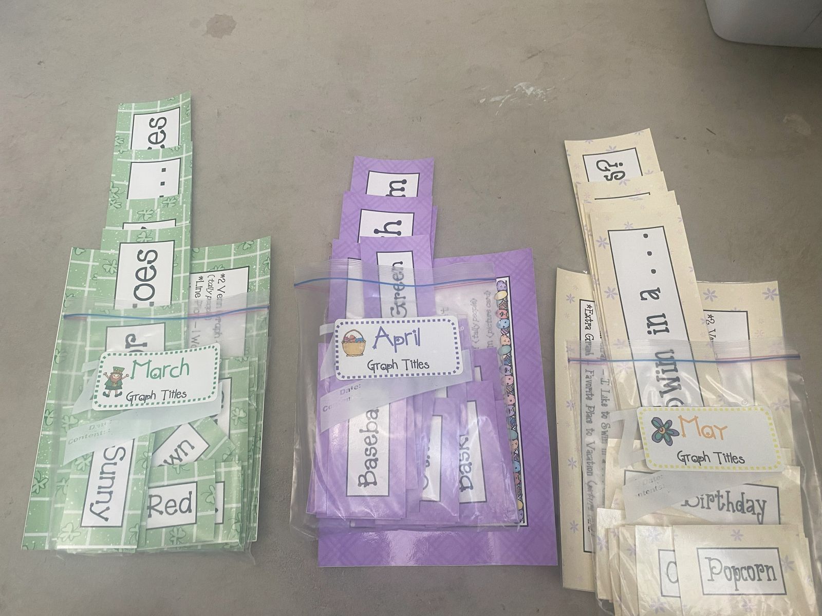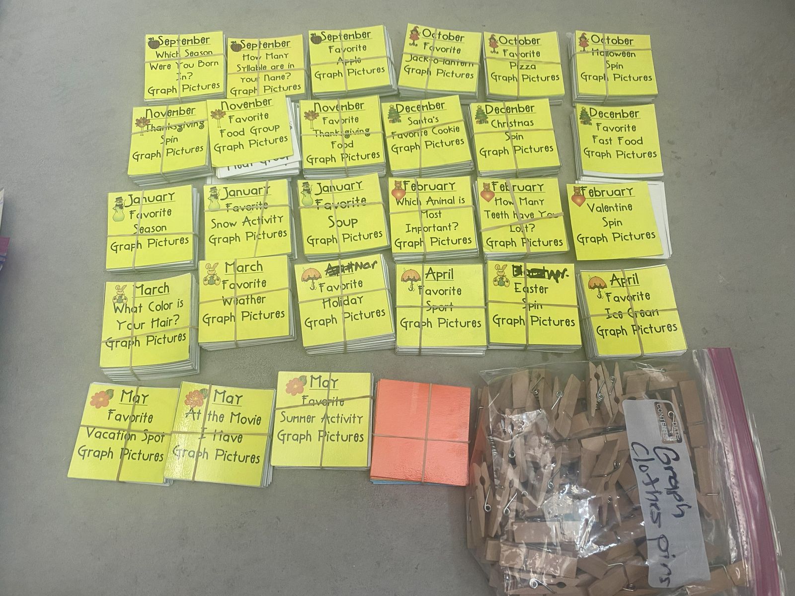 VenmoGraphs - This is a complete graph kit for the year to teach students about different types of graphing. Do 1 to 2 graphs with your class each week, one is daily for each month. It takes only a few minutes to do this. There are titles, cards, labels, graphs, clothes pins, and pocket holders. I used it for 2nd grade but could be used for any grade. May pick up in Pleasant View or Murray. $40