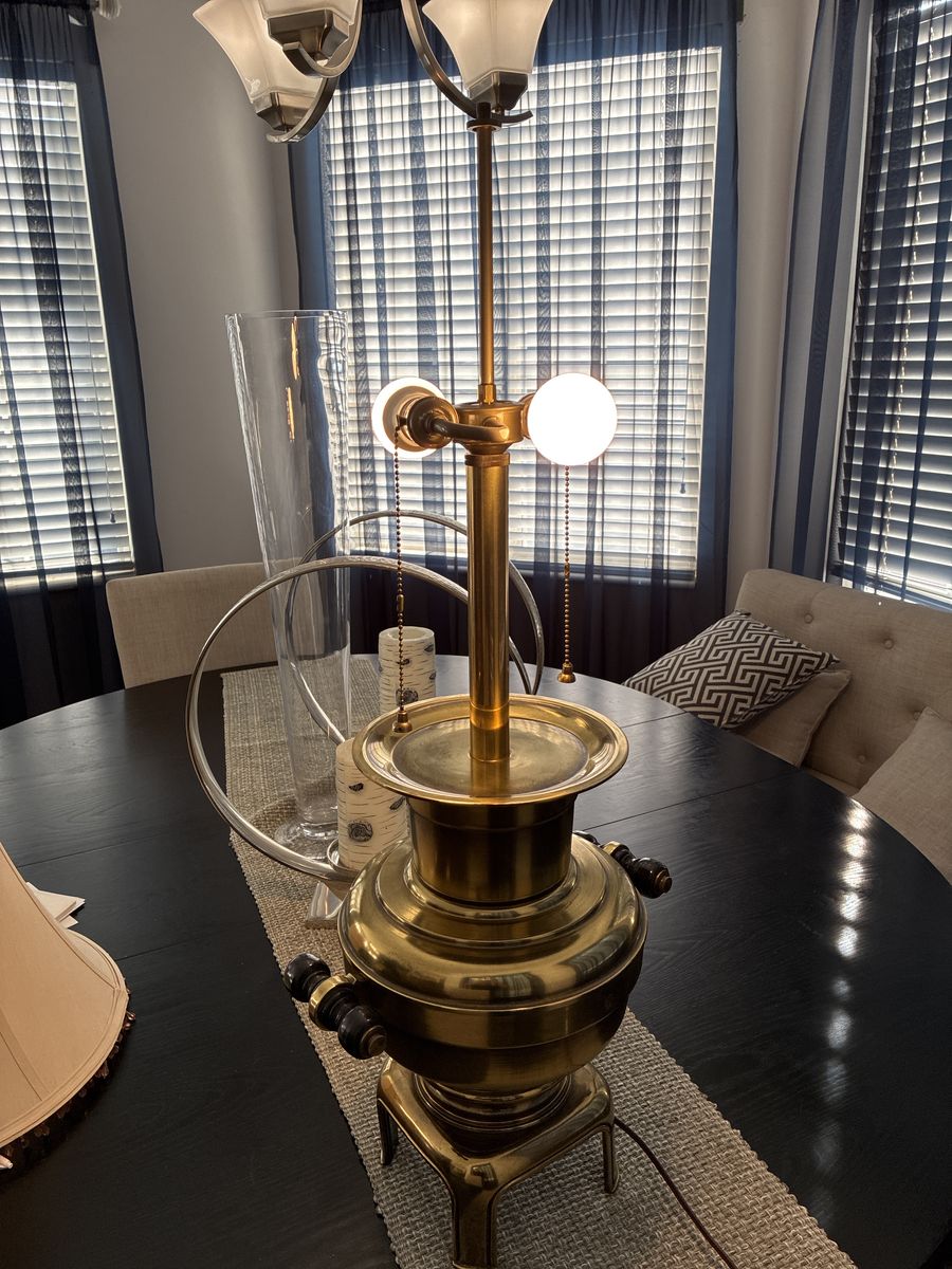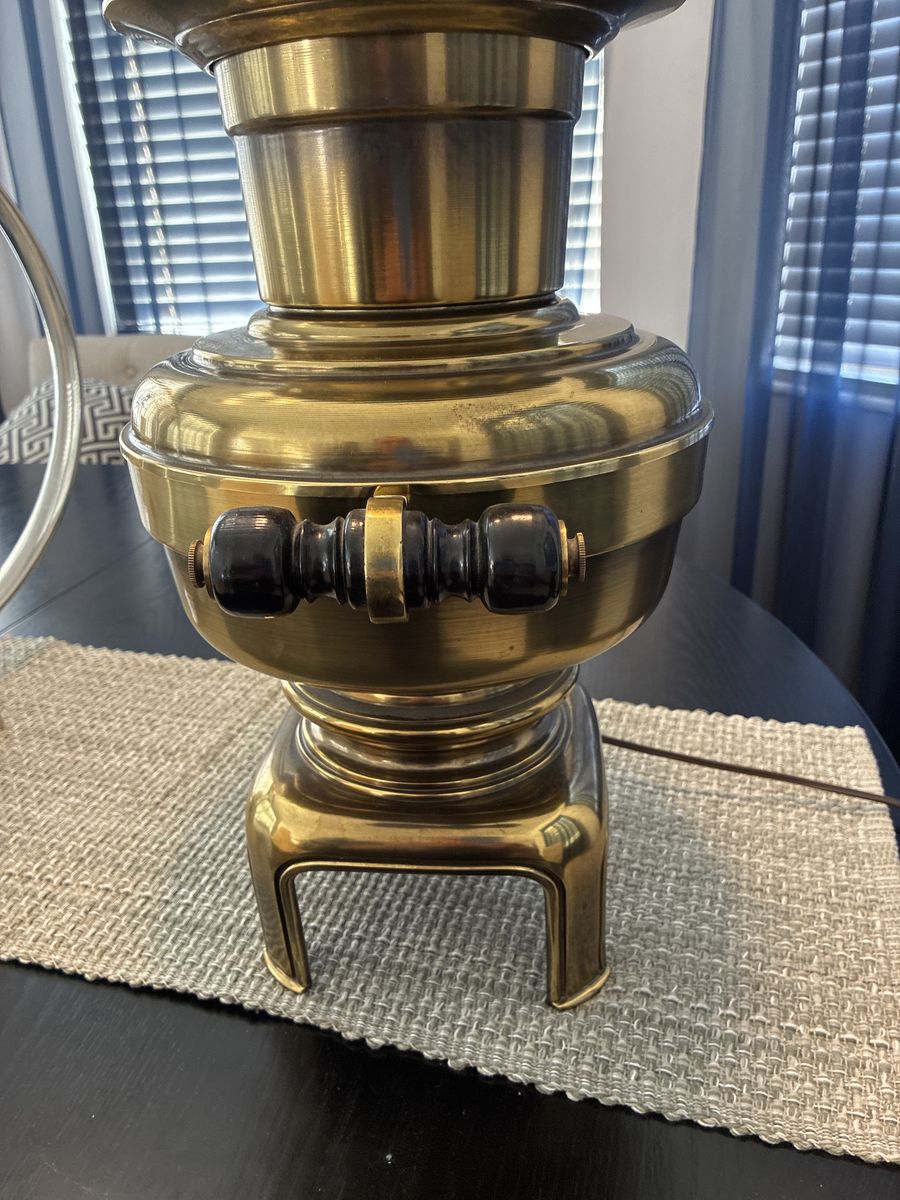 Authentic vintage solid brass table lamp, ginger jar or urn weighs 25 pounds with wooden handles. Makes it in the late 60s.it’s almost 3. Feet tall Needs polishing when polished it glows Like a diamond asking $300 Text me or call leave message no scams ! 801-440-2232