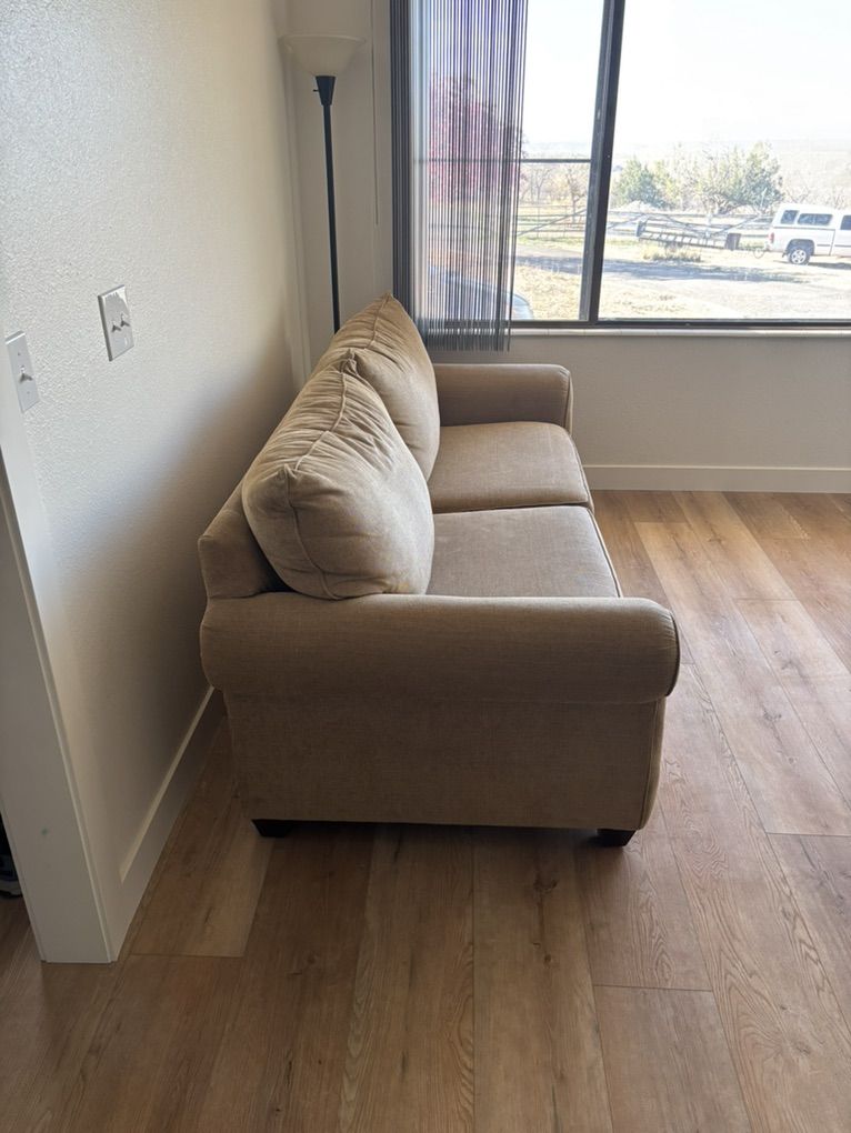 VenmoHigh quality, clean, fabric sofa. In great condition and very comfortable. 7’ long, 3’ deep, 32” to top of couch back