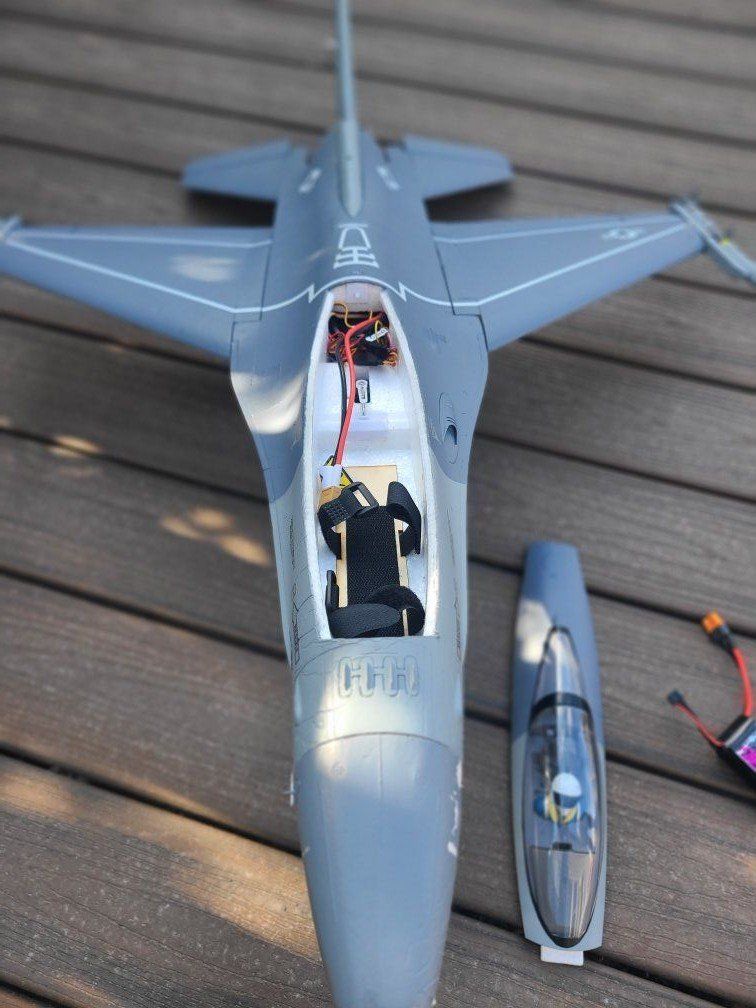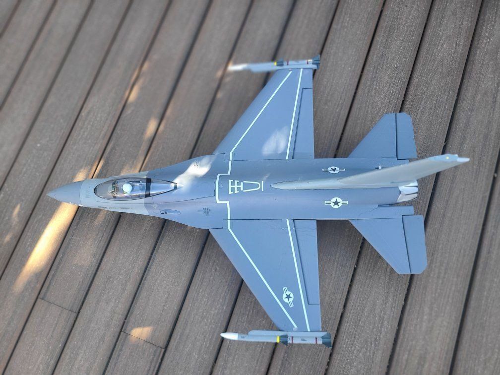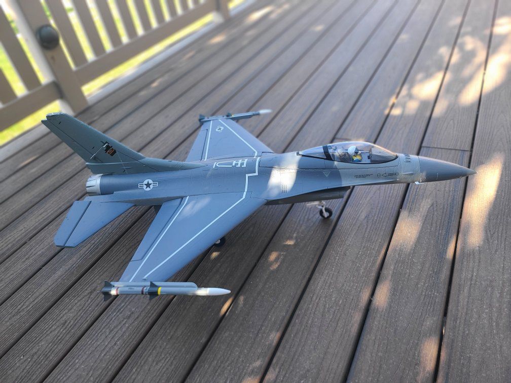 FMS 64mm F16 Fun little flyer. This has never been crashed but arrived with some shipping damage. I fixed it up and it looks great. Flys great. Fixed landing gear Comes PNP