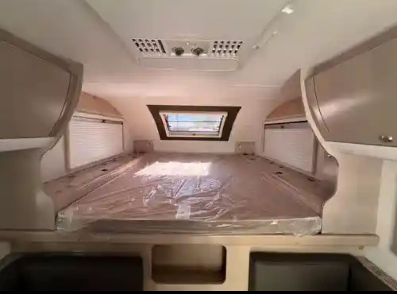 Off-Grid ReadyLithium battery system with solar prep and inverter Bluetooth battery monitor and intelligent power converter TV prep and stereo system Lightweight construction at just over 1,500 lbs — ideal for most ½-ton trucks