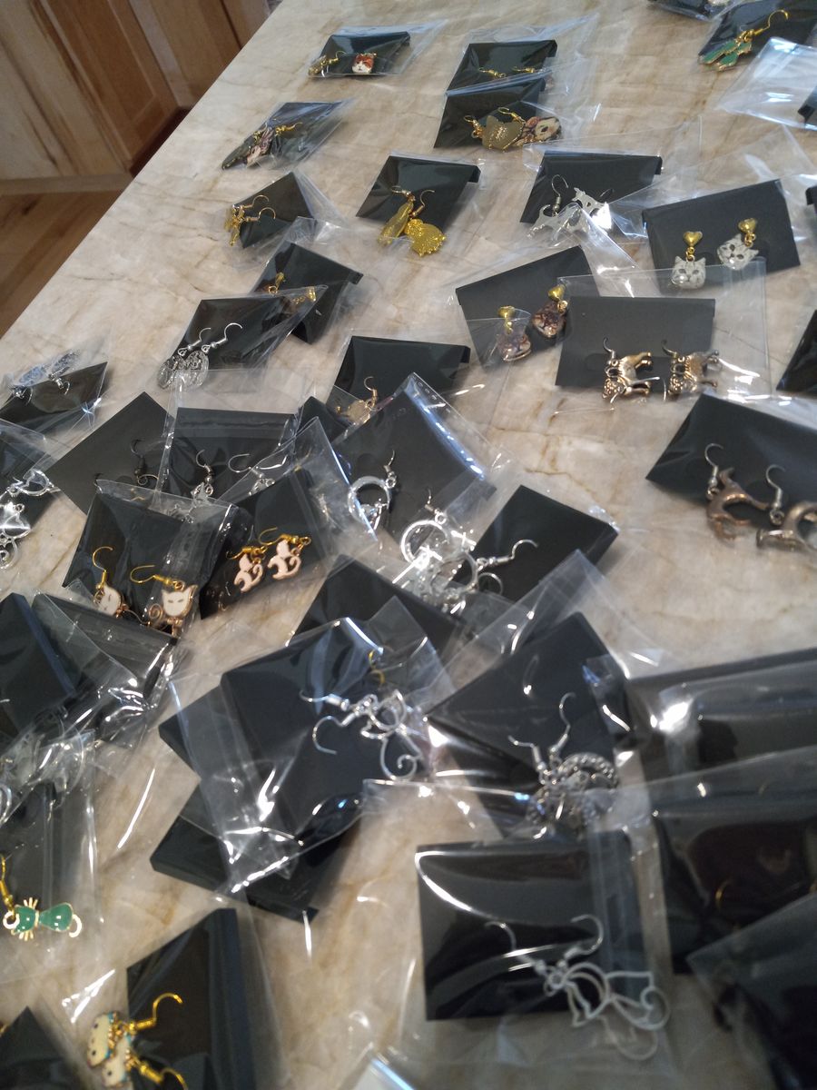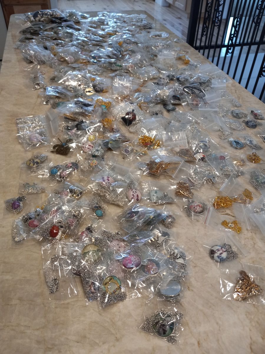 You'll get hundreds of pieces of jewelry already made up and ready for sale. 753 Necklaces 488 sets of earrings, 25 rings, 50 bracelets, 533 keyrings. These consist of animals, dogs, cats, rabbits, birds, horses, flowers, birthstones and more.