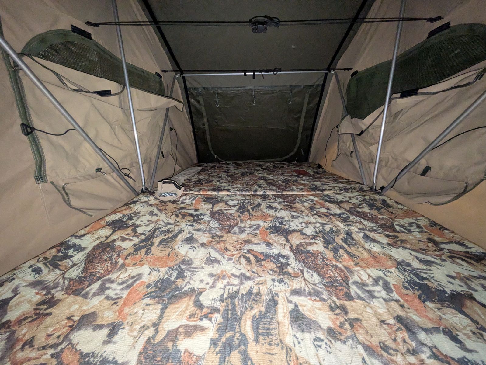 PayPalGreat tent, this one hasn't been used since 2023 as I bought the same tent in black/gray. I've sold my black one and now selling this one too, as we switched to camping out of the shell instead. It's about 55" wide (1400mm) and 96" long when unfolded, comfortably sleeping 2 with some extra room to spare. Mattress is a 2.5" high density foam, and a 260 mm double stitched rip stop canvas, stays nice and dark for sleeping in. Come take a look it's in my garage ready to unfold. Also have a couple k-9 rails with feet for a t channel install for an extra 250. I'll add those photos later. No trades. Cash/PayPal only. Can deliver if you don't have your attachment situation ready.