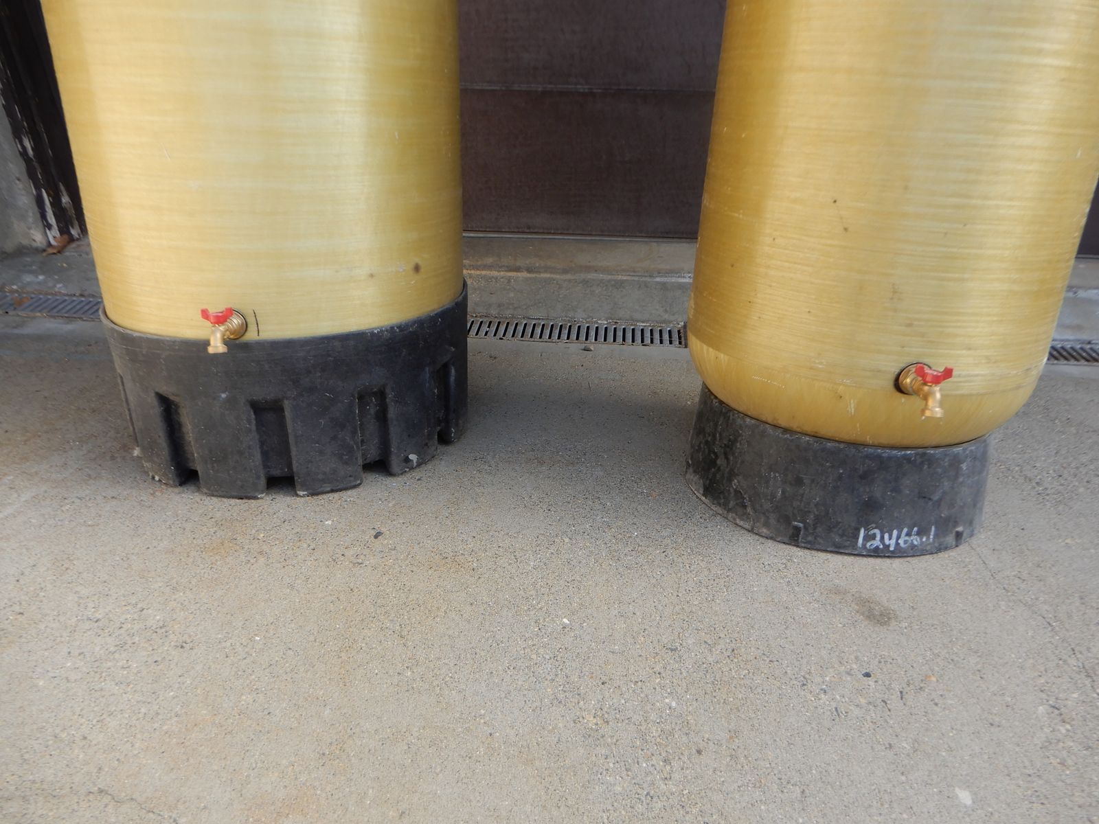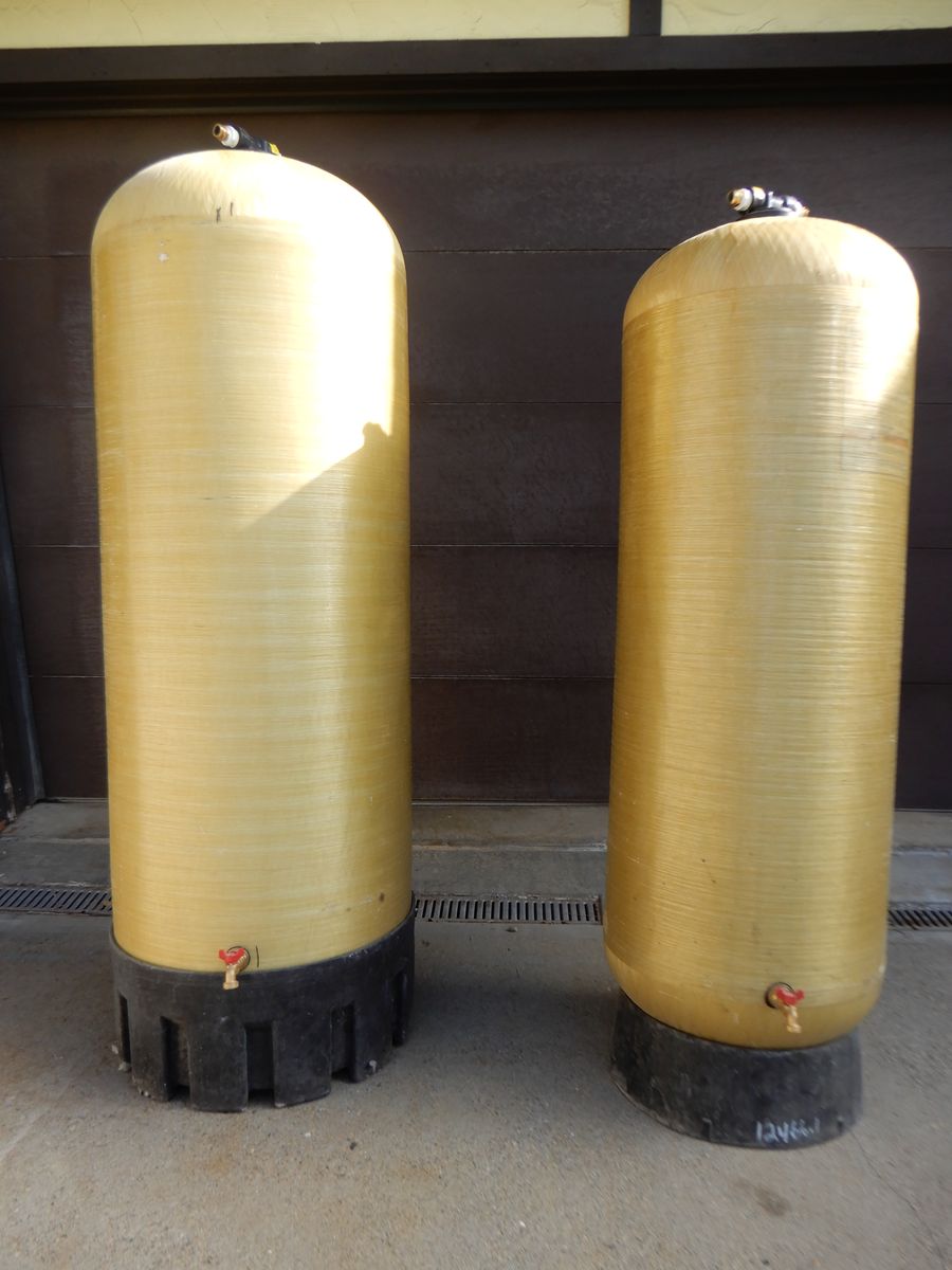 VenmoTanks were commercial softeners with Fibergalss shell and poly liner. I have installed 3/4" 1/4 turn brass ball valves at the botton of tanks. Large tank is 24" diameter and 77" tall including the base and top closure. It holds a little over 100 gallons, the small tank is 20 inches diameter and 69" tall including base and top closure. It holds a little over 55 ggallons.
