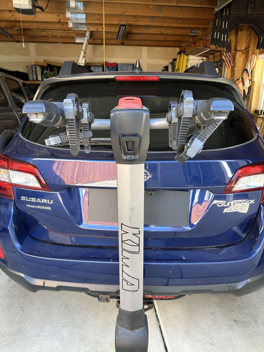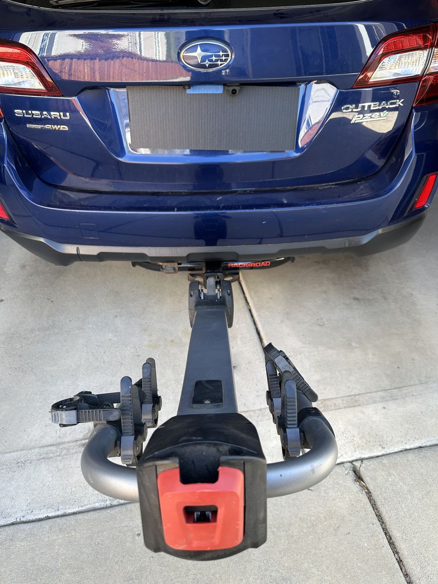Rack fits either 2" or 1.5" hitches. Tilts away for access to vehicle. Zipstrip straps secure bikes.